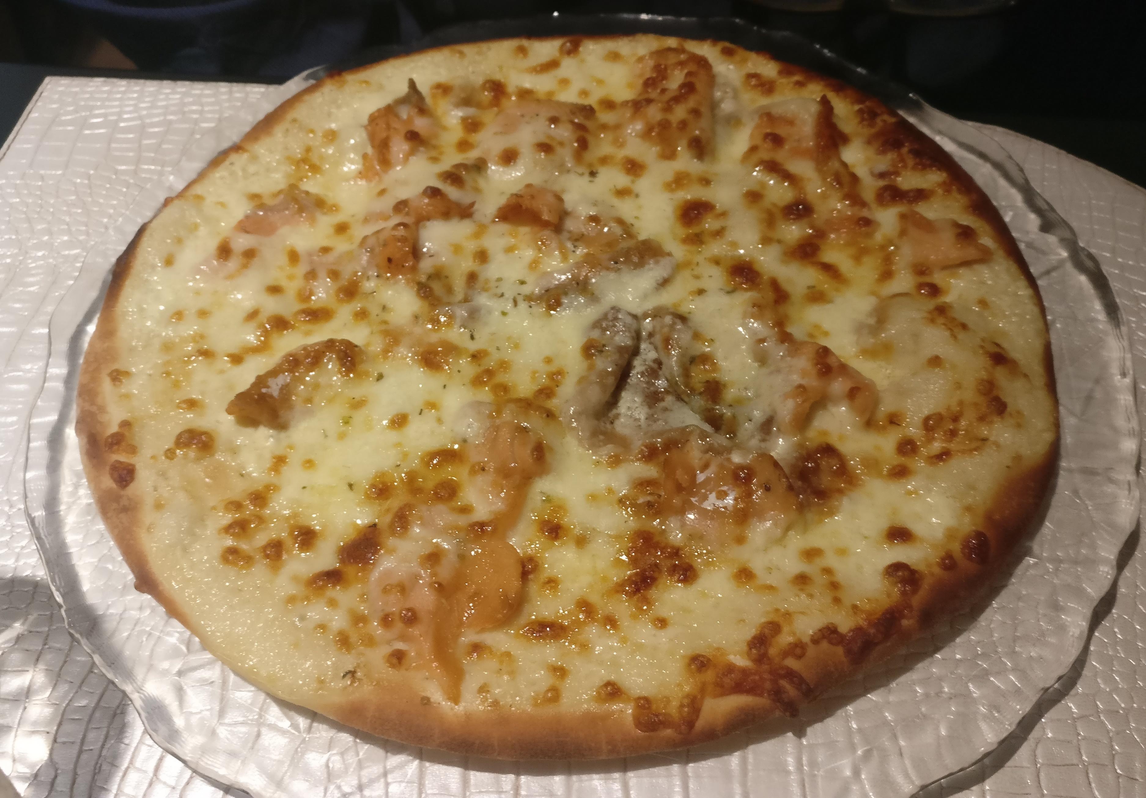 Commande passée sur uber eat. Très satisfait. La pizza était bonne et bien garnie.