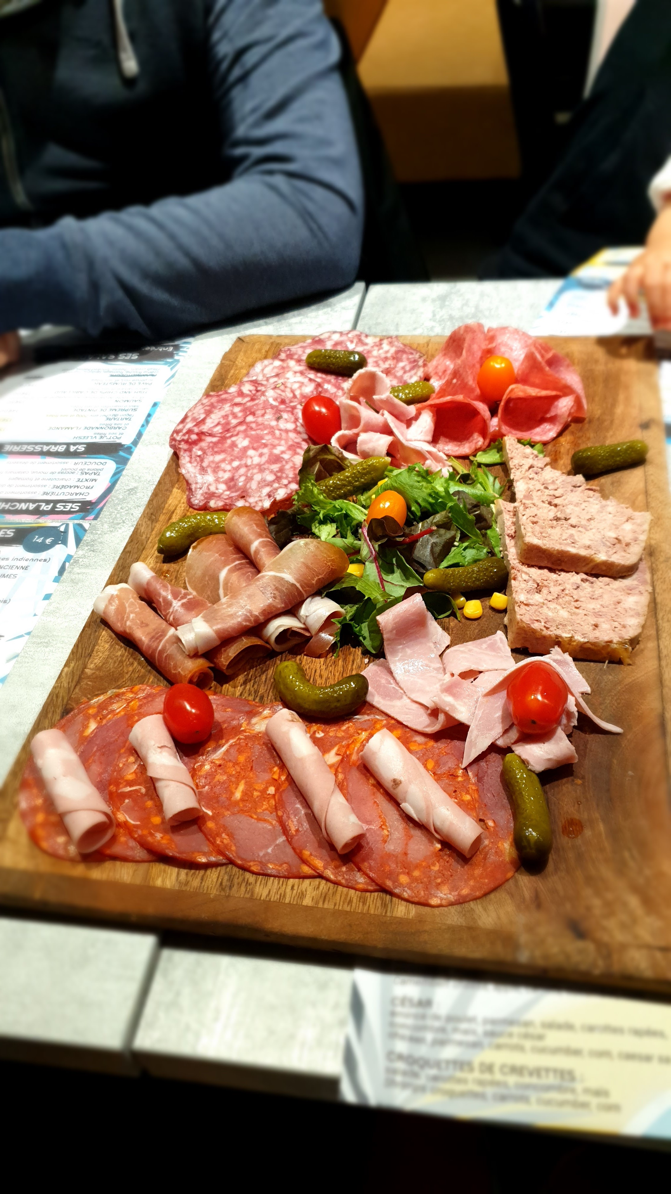 A fuir,planche de charcuterie et fromage très basique avec salade fané sans beurre. Moules inmangeables.