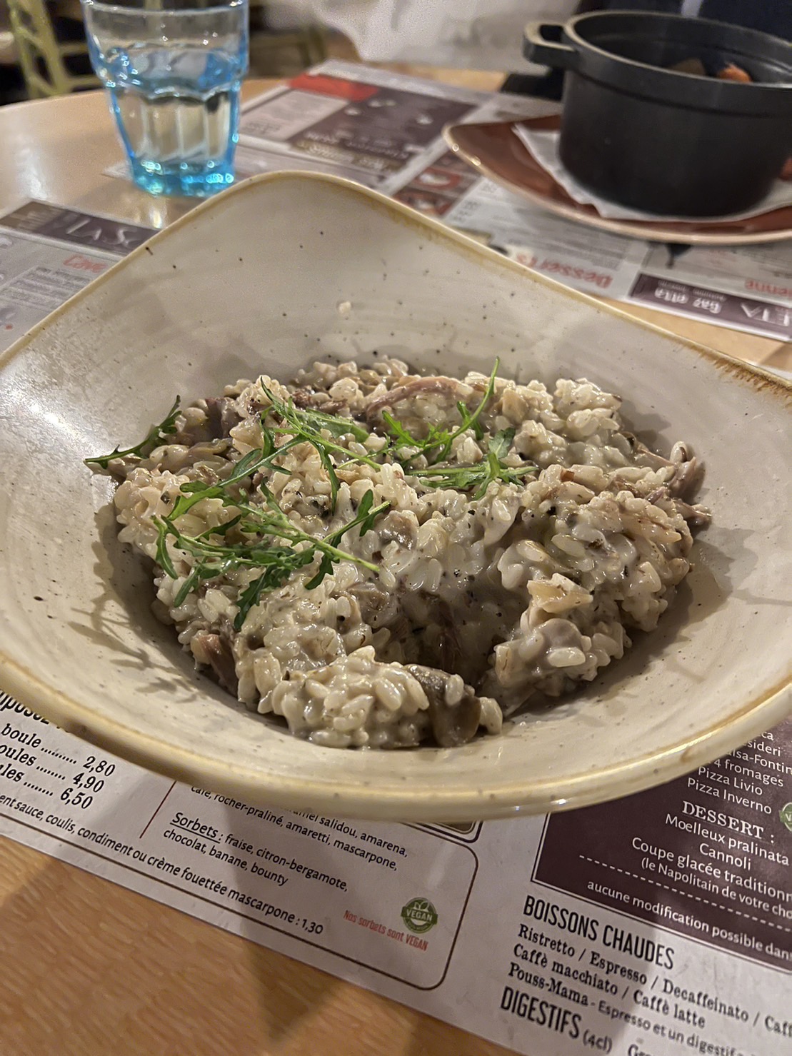 Honteux ! Risotto froid à 16€ ! Servi avec des crevettes ( non indiquées sur la carte ) alors que je suis allergique . Je le signale, l’assiette revient 3min après ! Donc tjs froid car c’est la même assiette, avec des résidus de crevettes au fond . Dans la demi-heure j’ai été malade ! Pas pu prendre mon dessert commandé juste avant d’être mal ! Dégoûtée de ce manque de respect , c’est une escroquerie pure et dure ! Le service d’hygiène devrait passer plus souvent, je suis curieuse de savoir s’il resterait ouvert au public . Je signale que c’est la 2eme fois que ce restaurant me rend malade . La fraîcheur n’est clairement pas au rendez-vous. FUYEZ !!!!