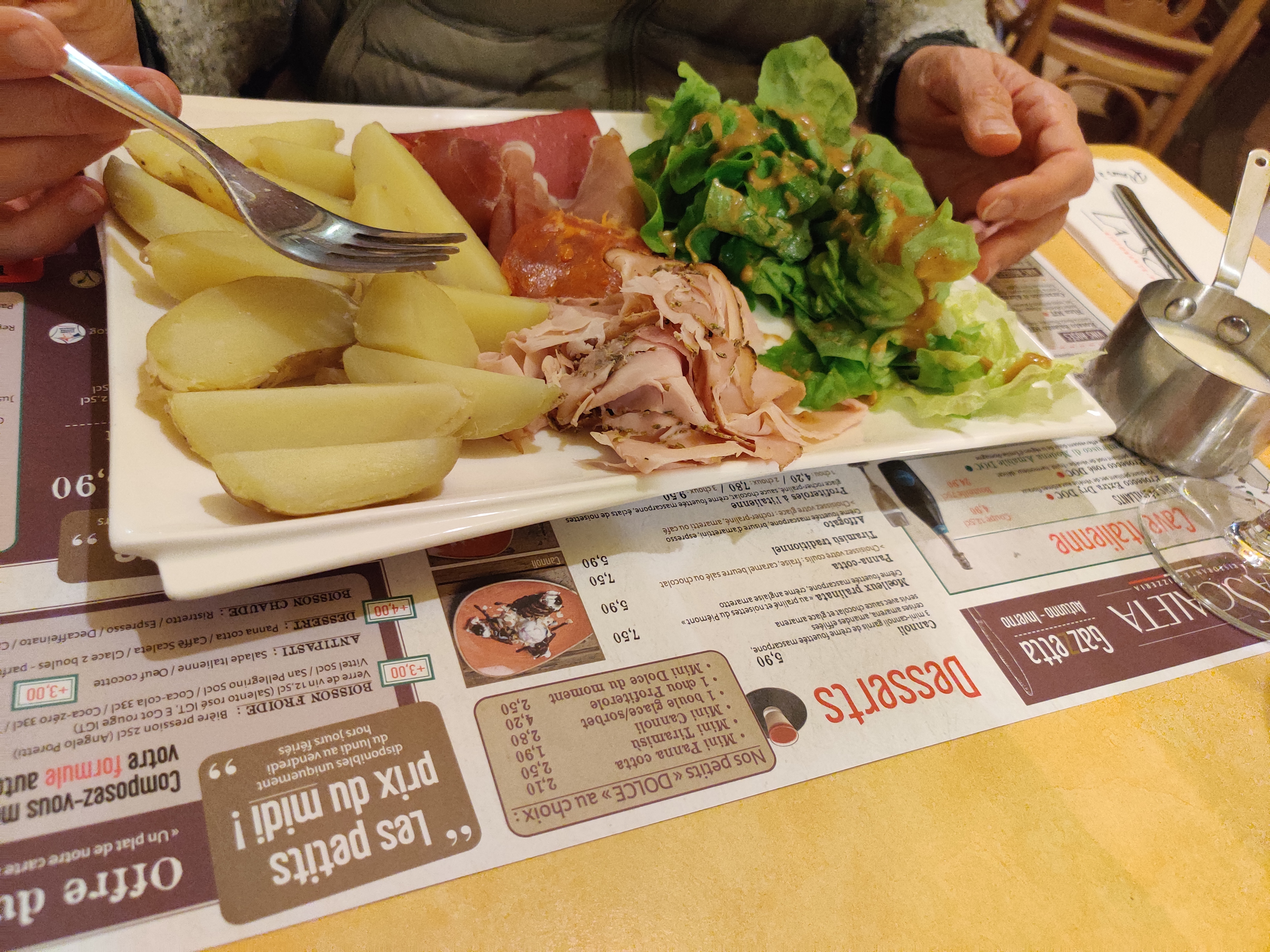 Suggestion du jour: Souris d agneau et pommes grenaille, un délice. Dommage, pas le temps pour un dessert ni même un café gourmand