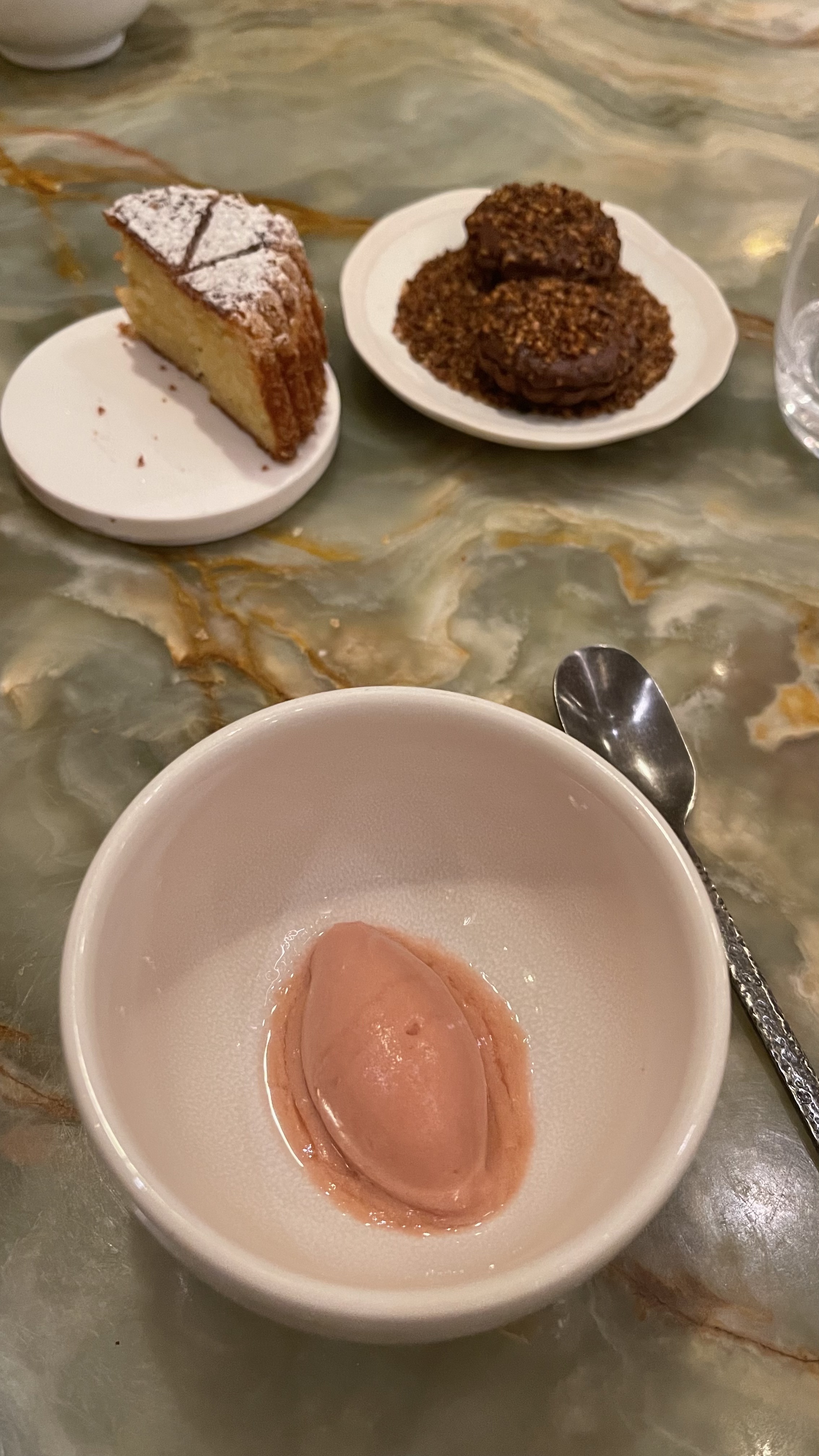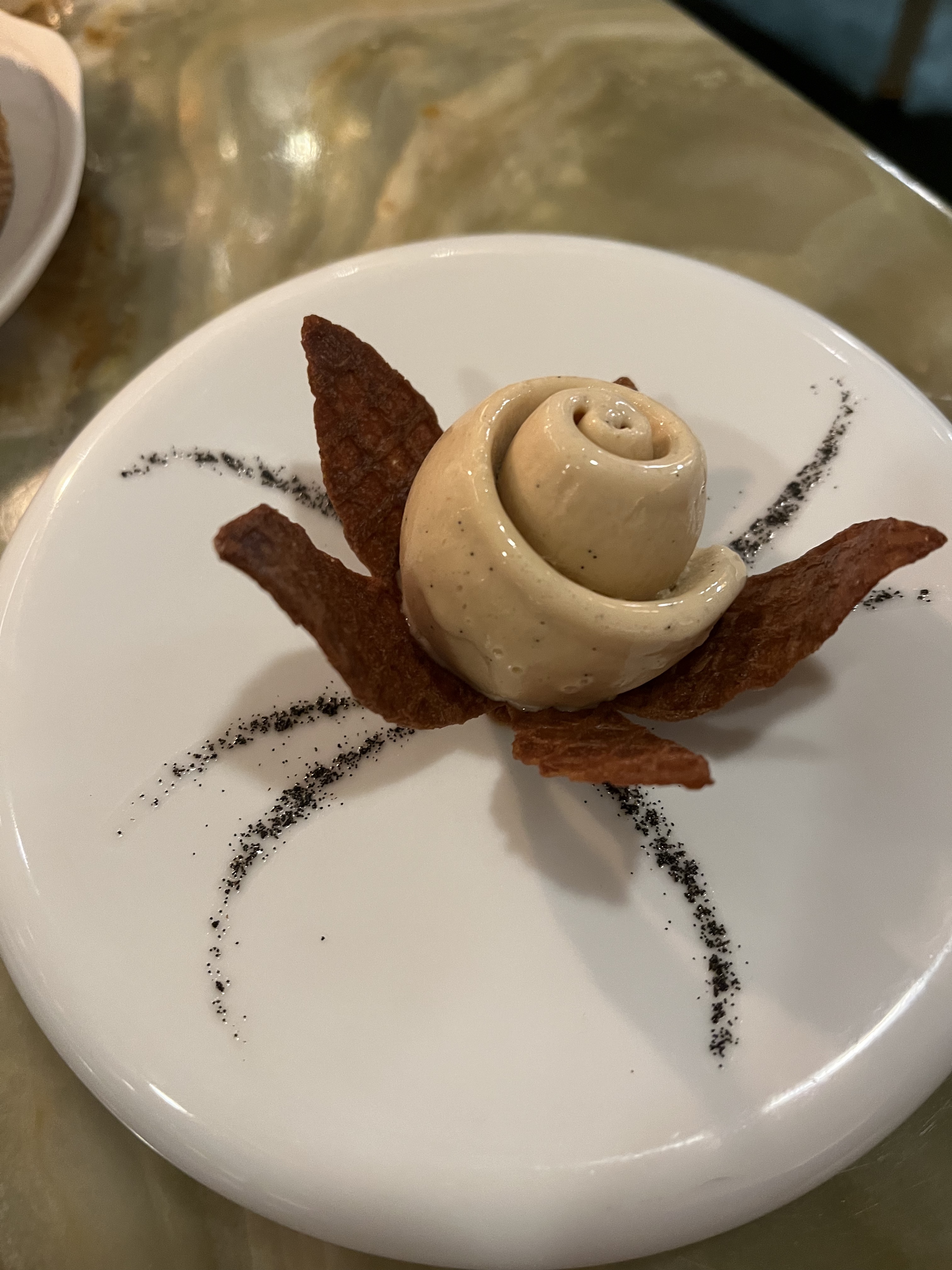 Nous y sommes allés avec le repas de 7 plats et nous n'avons pas été déçus ! Il comprenait 2 à 3 bouchées avant l'entrée qui étaient uniques et délicieuses, ainsi que du fromage et du dessert qui n'étaient pas non plus inclus dans le repas de 7 plats. C'est une expérience de 4 heures (dont nous n'étions pas au courant) et il y avait un spectacle à 23h30 donc nous avons dû partir un peu plus tôt mais nos amis ont adoré les desserts. L'ambiance est vraiment charmante et nous avons adoré notre séjour là-bas.