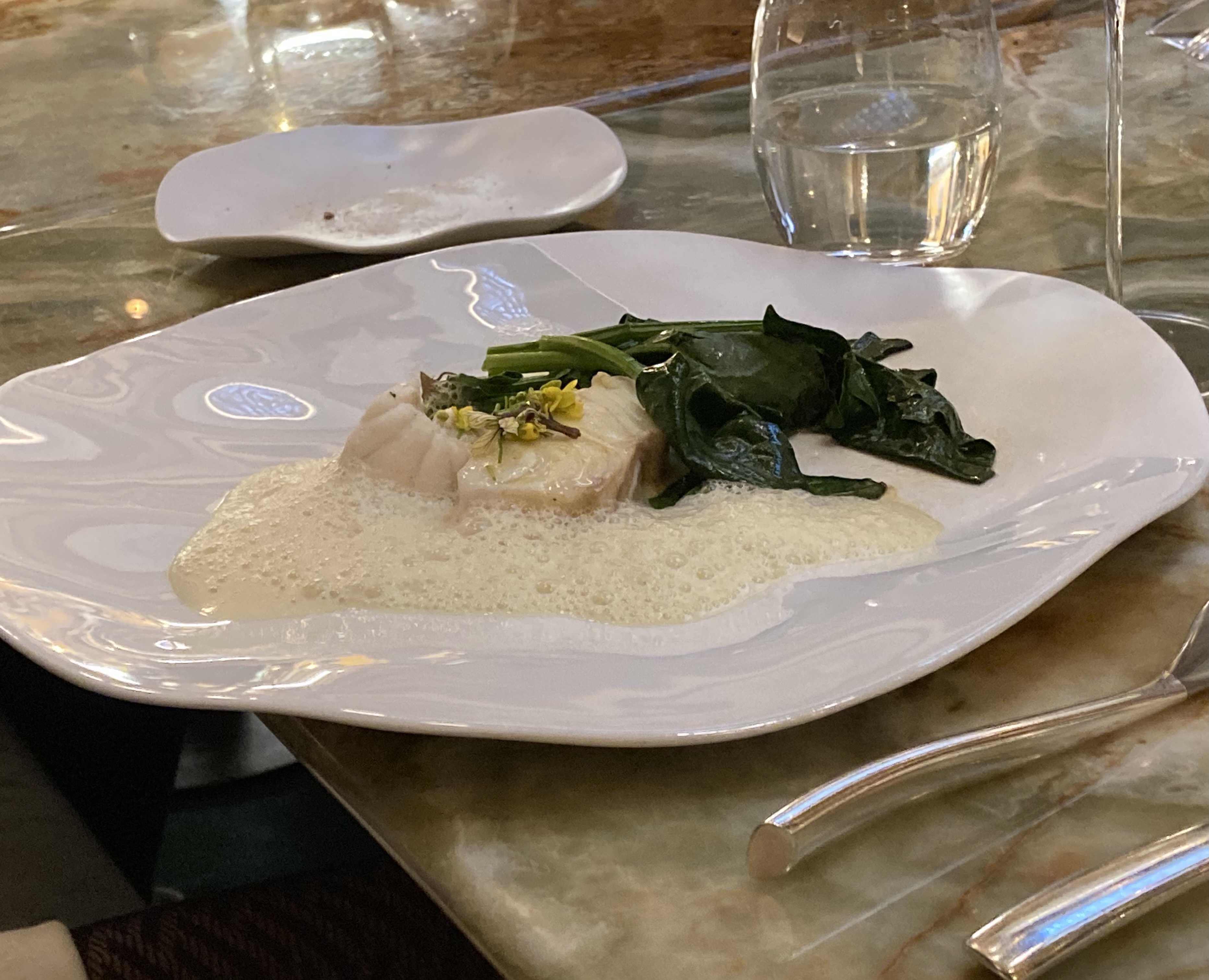 Un bel écrin, un accueil au top, des plats équilibrés et maîtrisés. Les propositions sont terriennes. Avec le travail autour du pain, on replonge en enfance, à l'heure du petit déjeuner et du goûter (se souvenir longtemps de cette cuillère sortie du pain). C'est gourmet, gourmand sans être pesant. J'ai adoré la Truffe noire, le ris de veau. La préparation de ce dernier mets frôle la perfection. Enfin, le dessert autour de la Prune Galicia était un bonheur non seulement pour les pupilles, mais également pour les papilles. Un grand bravo à l'équipe pour son raffinement, ses attentions sans oublier le décor, la vaisselle, les couteaux.