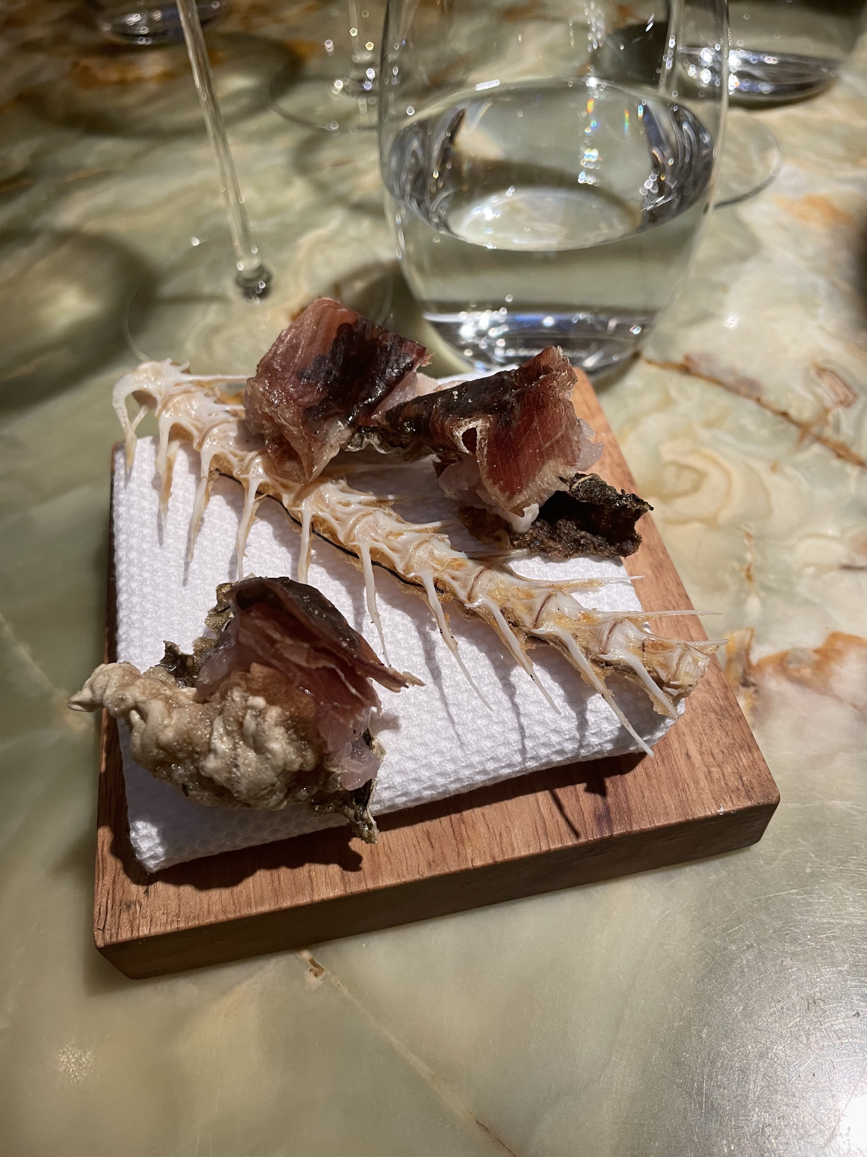 C'était une énorme déception. Le restaurant était tellement dur que nous étions mal à l'aise tout le temps. Pire encore, la nourriture était fade et banale. En dessert, on nous a servi une mousse au chocolat avec de l'huile d'olive, quelque chose que nous avons déjà mangé des millions de fois. Finalement, un repas de 7 plats a duré près de 4 heures et, à un moment donné, nous nous sommes sentis davantage comme des otages. Économisez votre argent et mangez ailleurs plus intéressant.