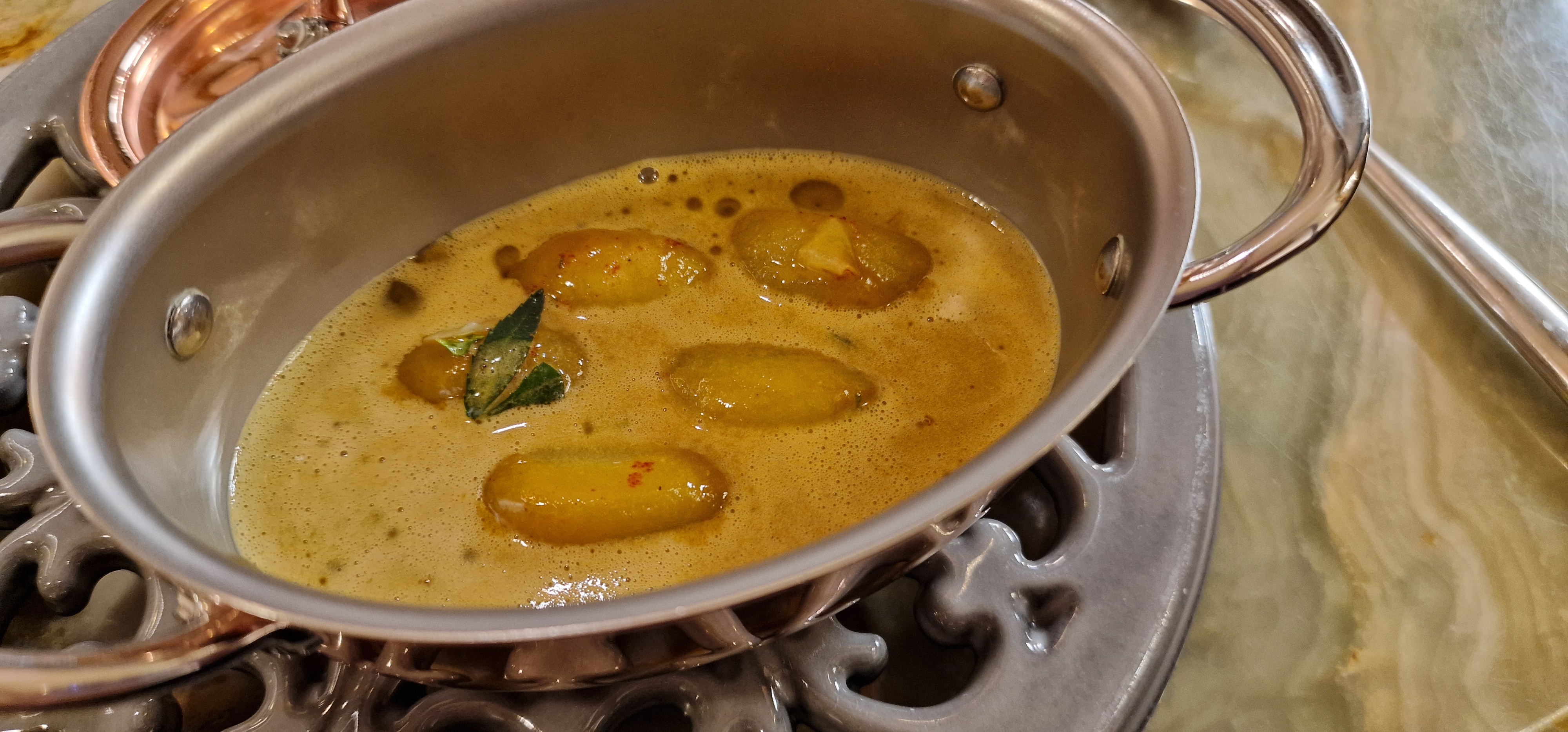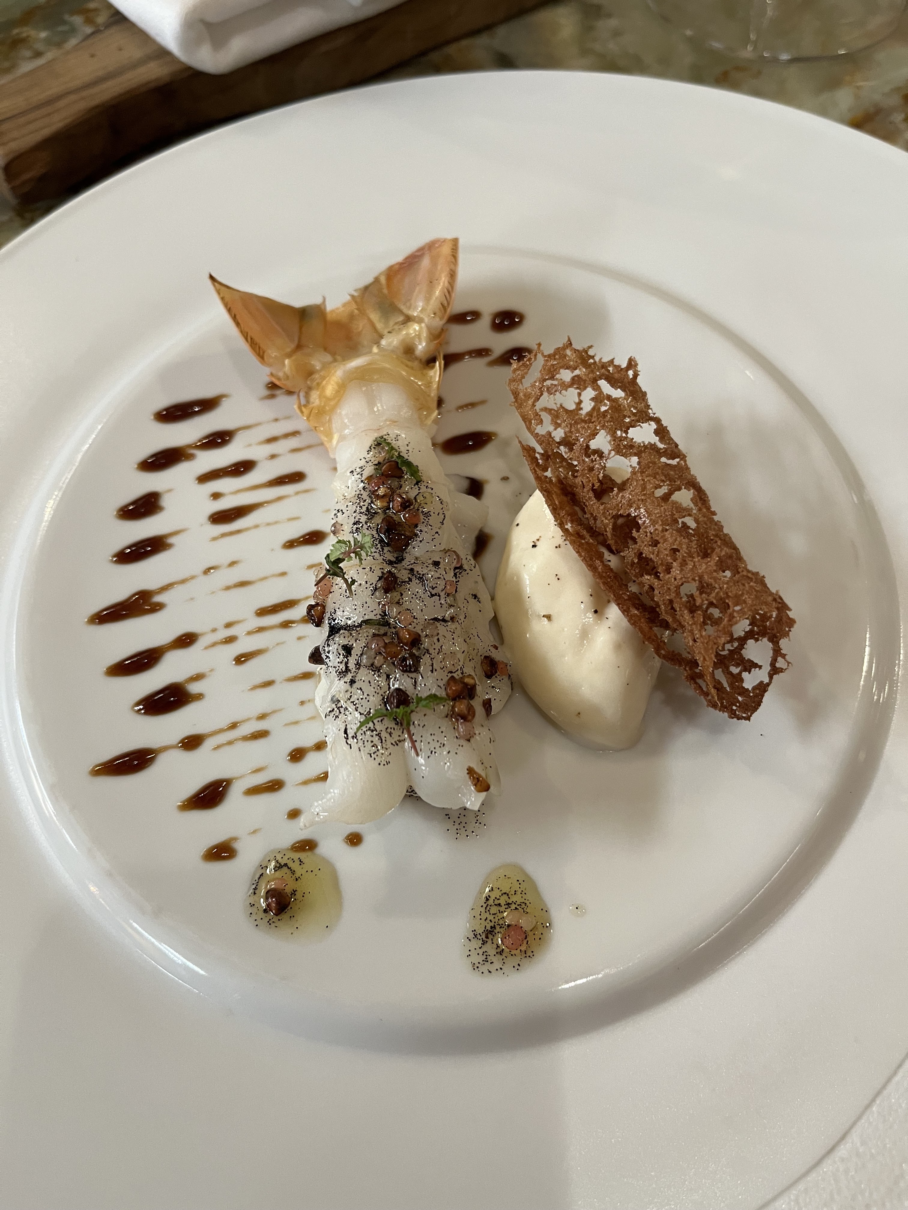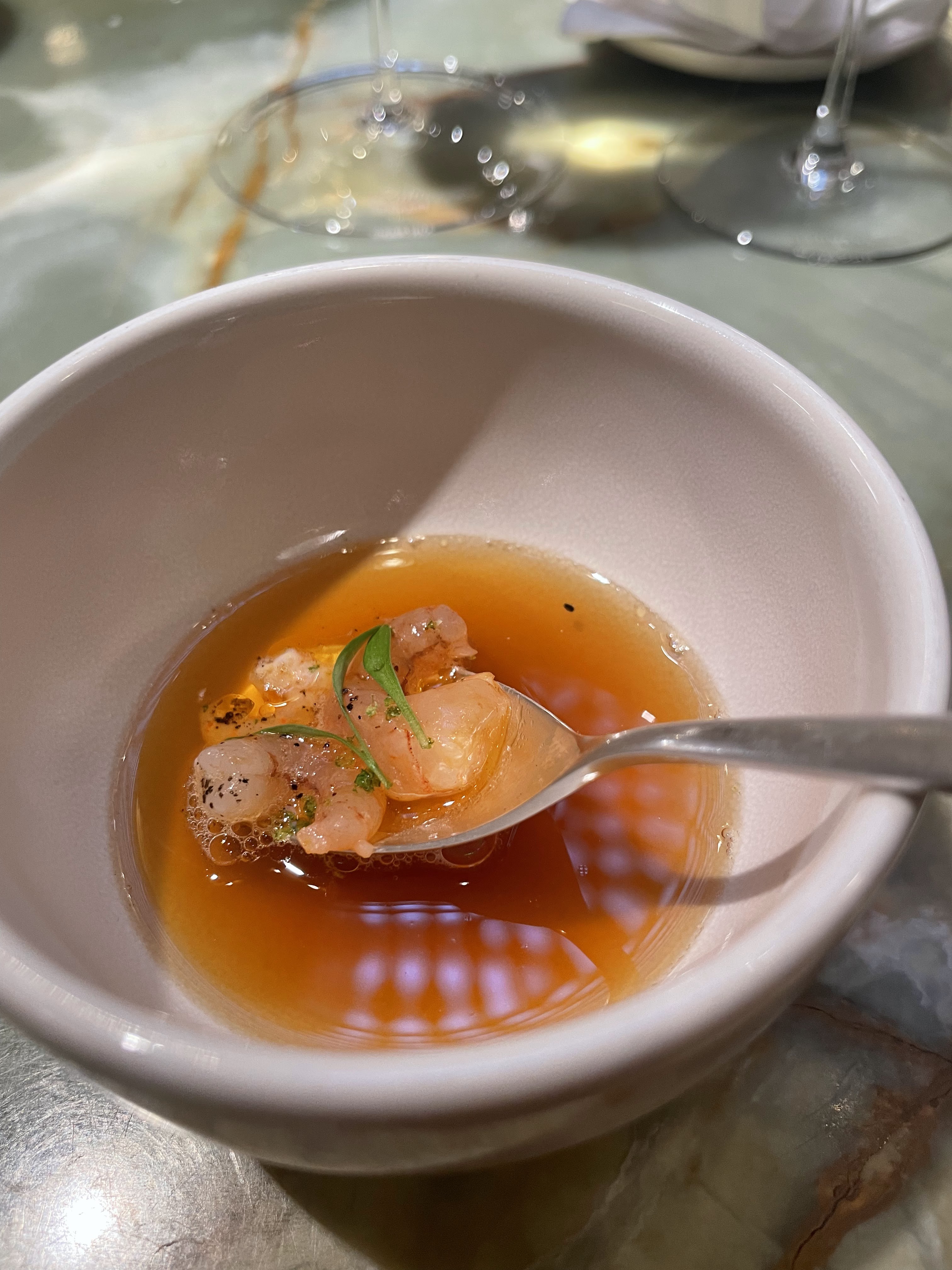 Le hasard du menu en 7 actes a fait que nous avons dégusté nos mets préférés ! Du début jusqu'à la fin un régal avec une mention spécial pour les crevettes et ce bouillon excellent et les riz de veau..bravo et merci à cette très sympathique équipe !! Stéphanie