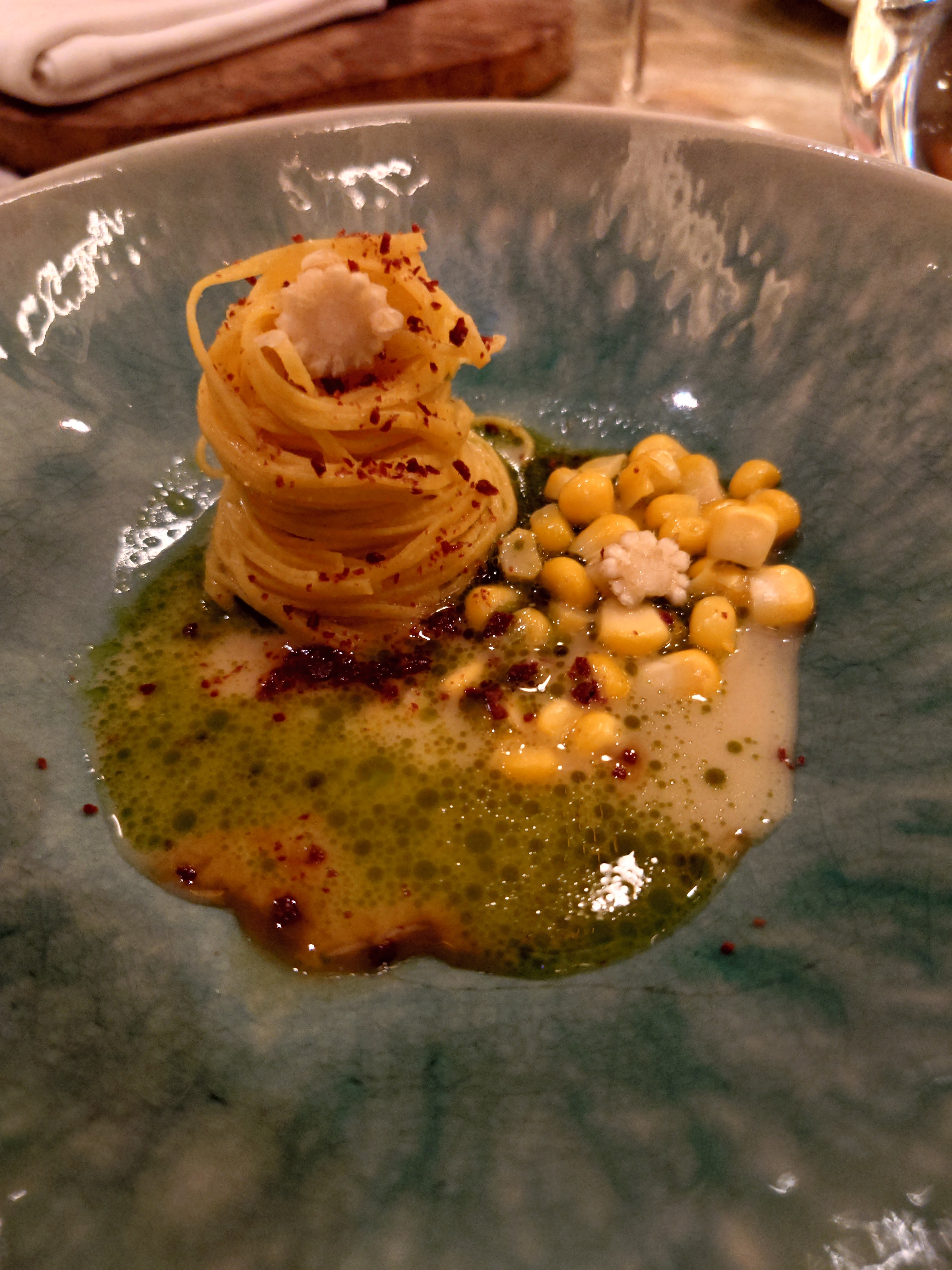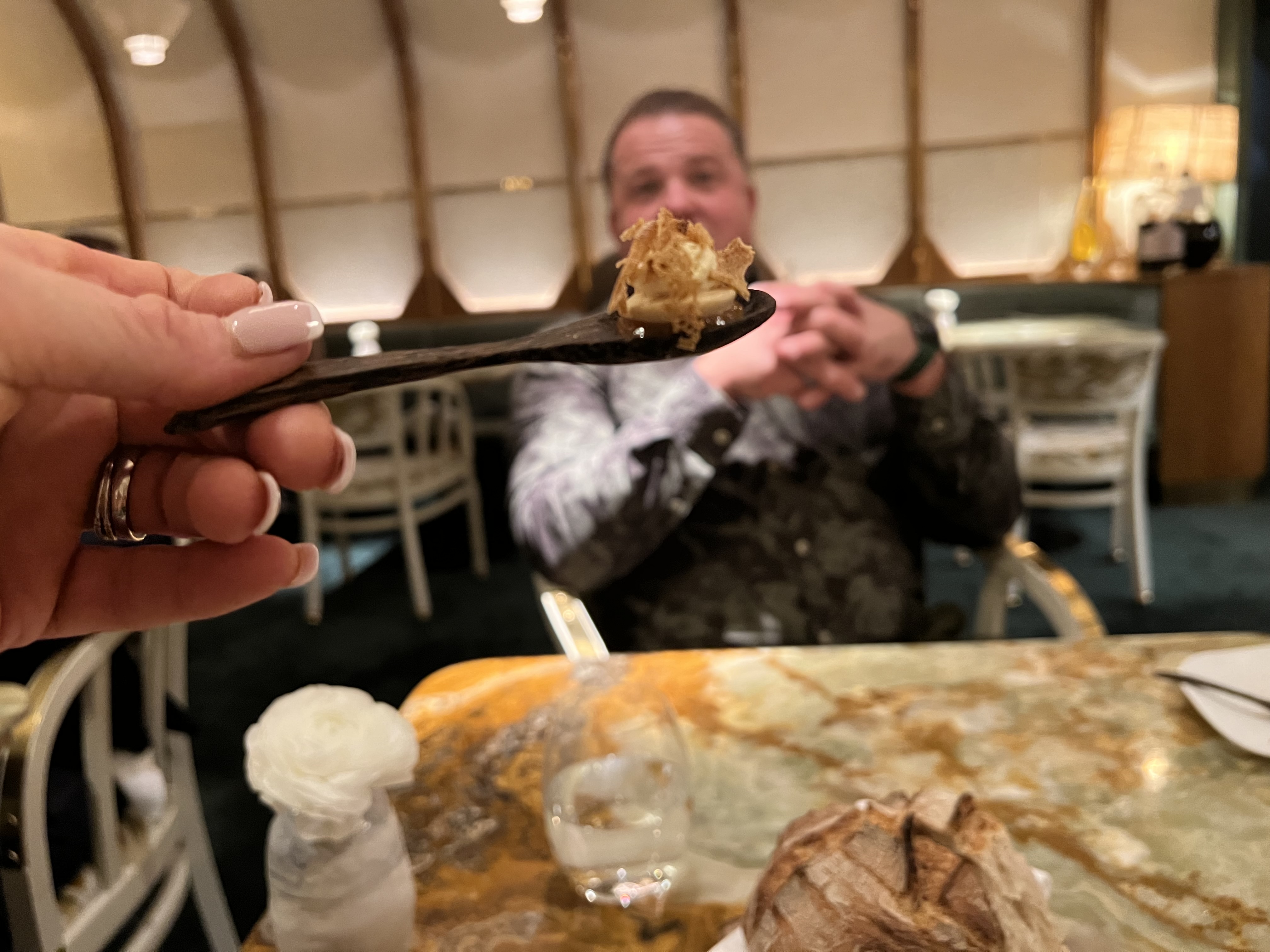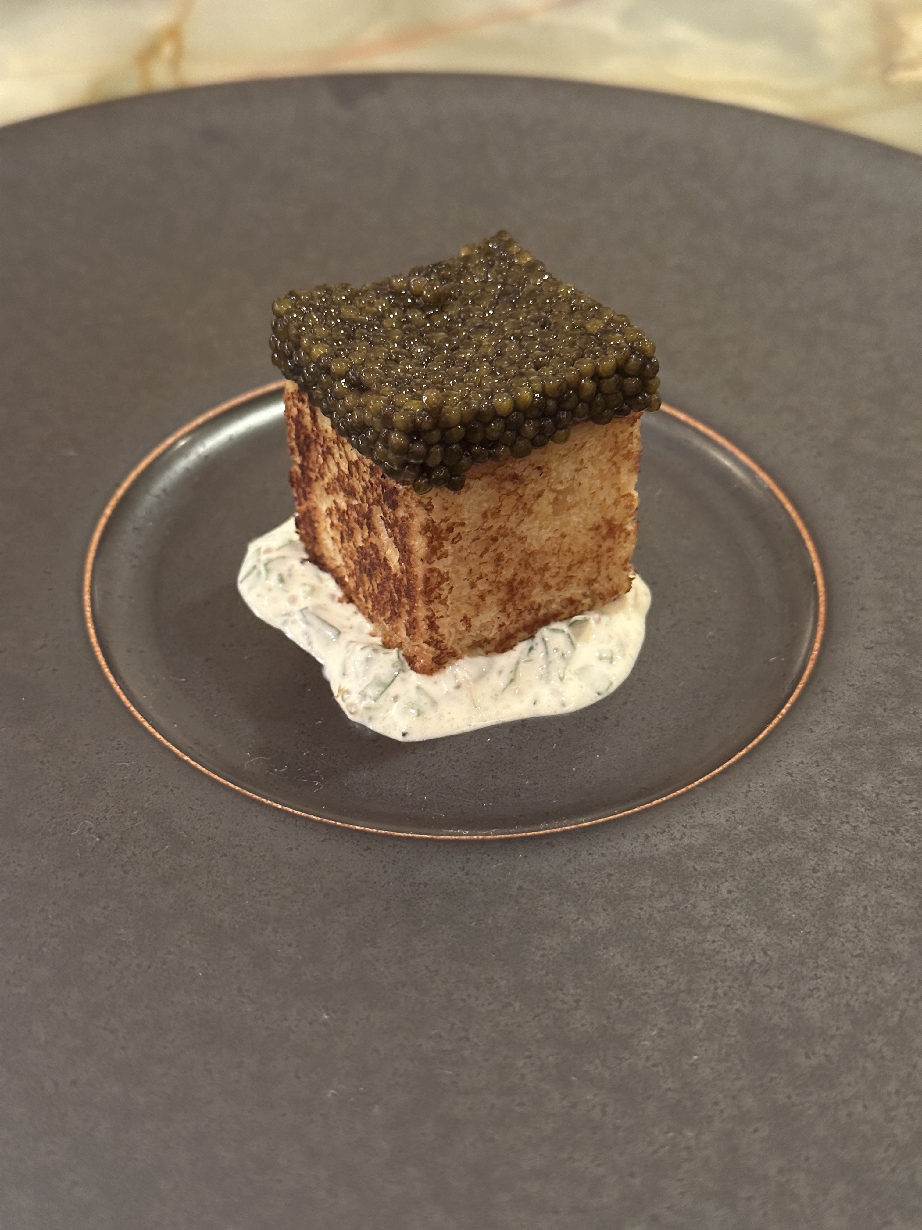 Pas une expérience étoilée Michelin… nourriture ennuyeuse sans surprise.. comme manger dans un bon bistro.. rien de plus malheureusement… Pour nous, il n’y avait pas d’histoire derrière…