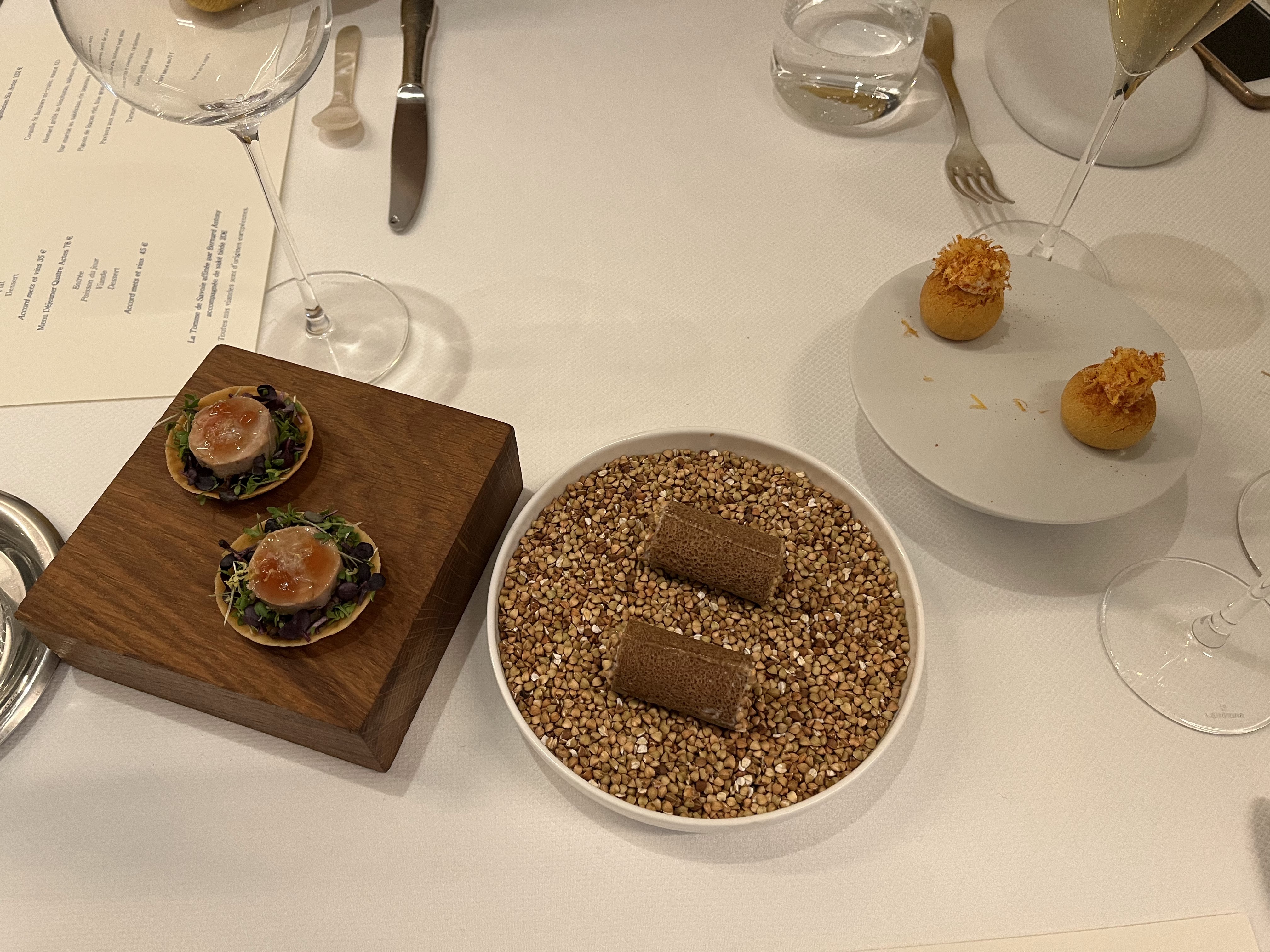 Une très très belle découverte Des saveurs subtiles et inédites Une cuisine originale et juste De très beaux dressages Si je devais trouver une chose que j'aurai moins appréciée, çà serait les mignardises. Tout le reste était délicieux et même au delà !