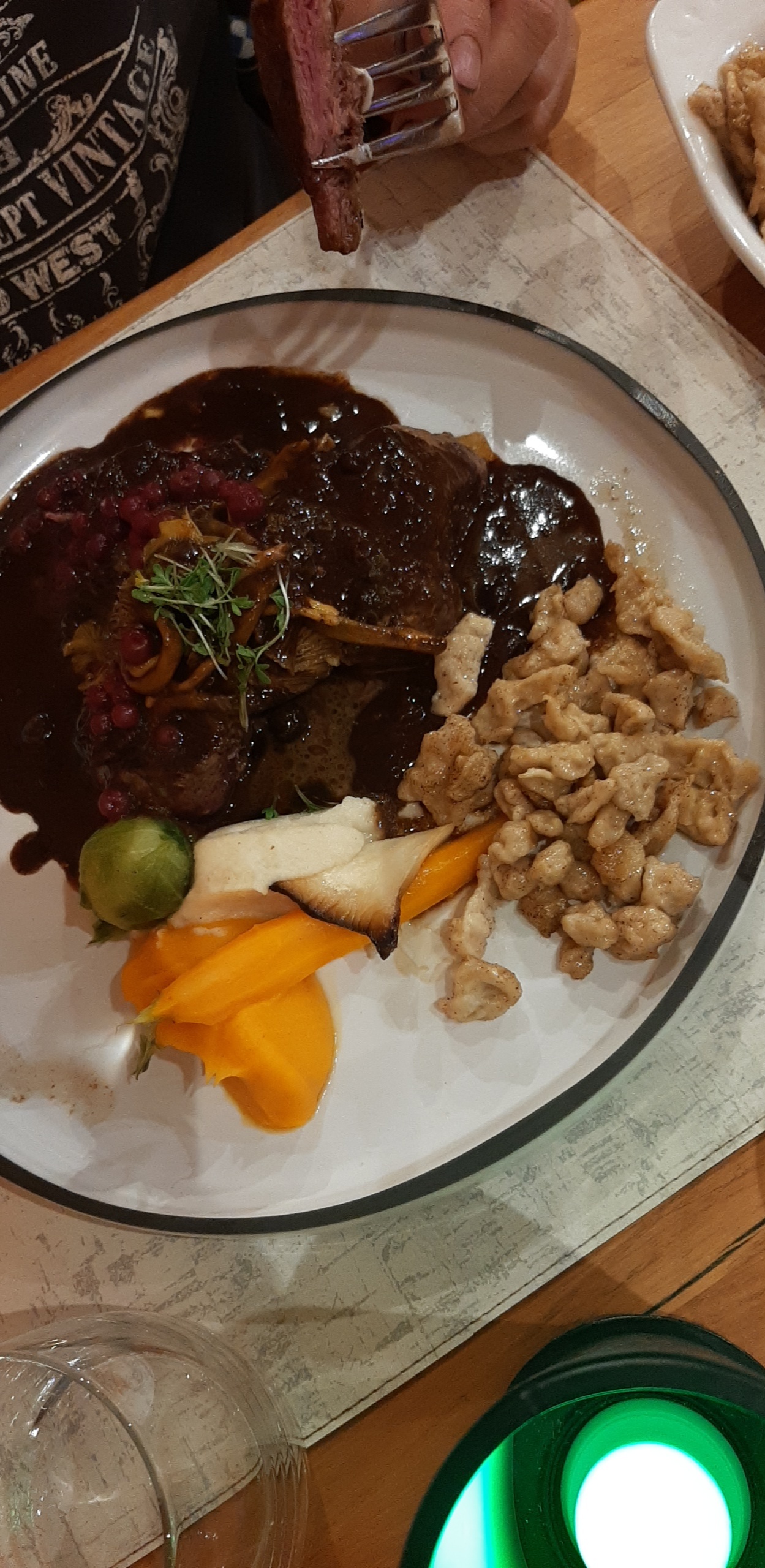 Excellent, le restaurant utilise des bons produits ! Très bel espace à l’intérieur, une vrai ambiance chalet. La serveur était super !