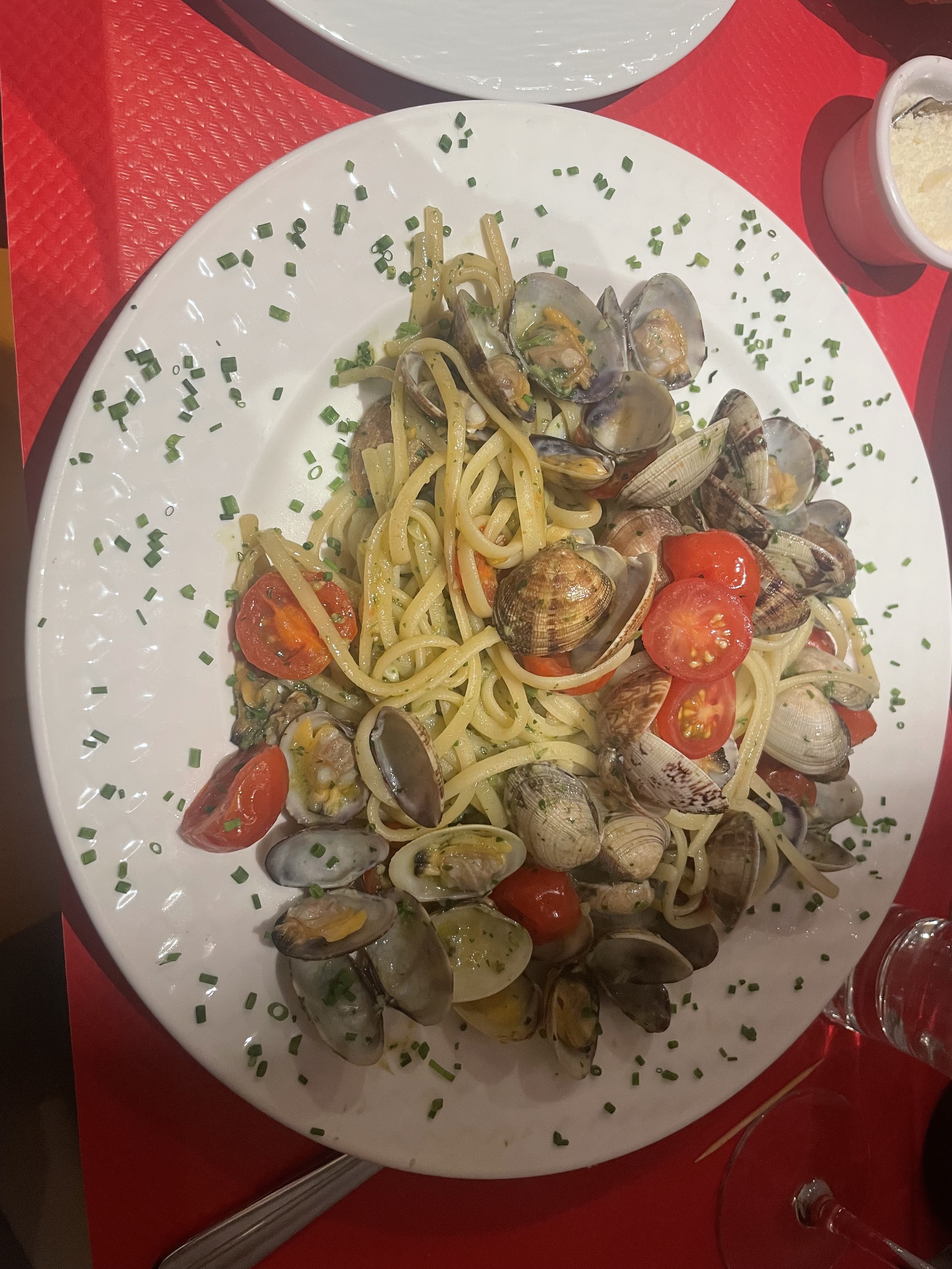 J'ai adoré 💯/ 💯 les meilleures pâtes alle vongole que je n'ai mangées depuis longtemps ... surtout bien chargées en palourdes un vrai régal je vous assure ‼ J'étais déçue en arrivant car je pensais que ce restaurant était tenu par des italiens ....mais qu'importe le cuistot a remporté toutes mes étoiles...merci à lui et au restaurateur 😍