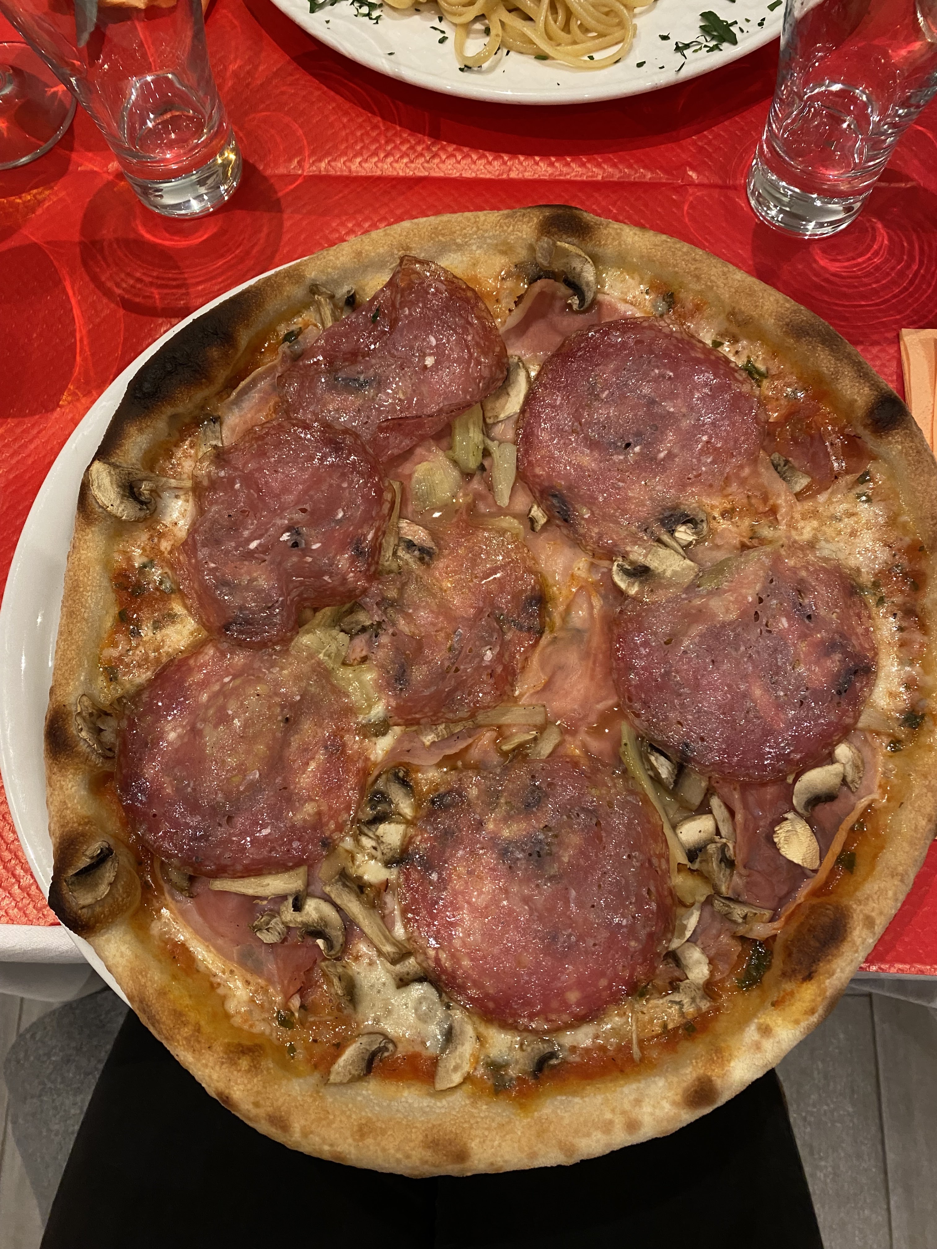 Accueil et service pro et très sympathique. Les pizzas sont super bonnes, la pâte et super ainsi que la garniture. Les pâtes de nos voisins étaient alléchantes.