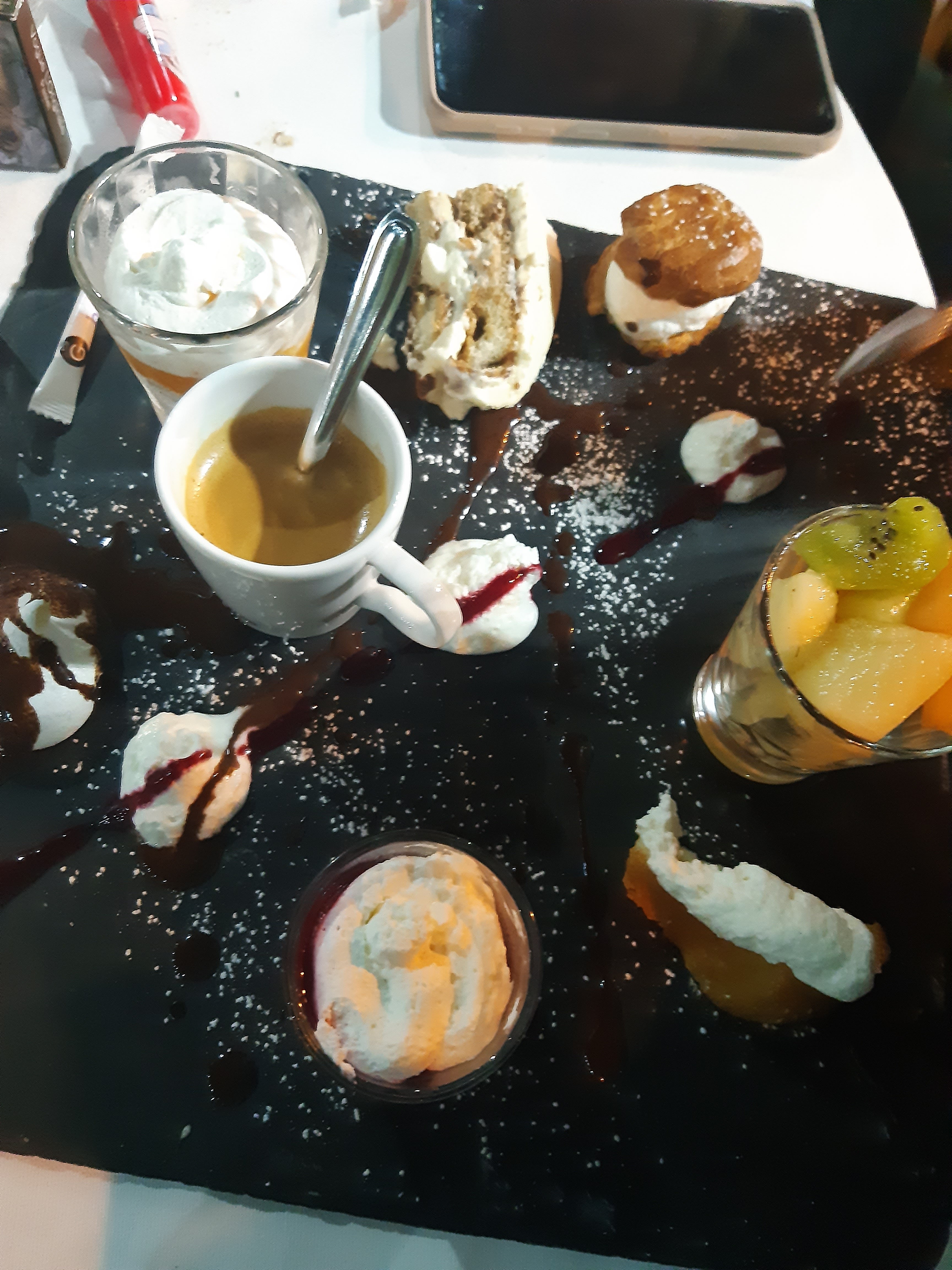 Très belle vue à l'etage, repas copieux. Assiette colorée. Très belle salle. Un gros bémol cependant : service inexistant. On ne laisse pas un carré vide. On ne dit pas à la clientèle Des que les personnes sont parties nous allons rentrer à la maison, on a aussi une vie . Que doit on penser ? Qu'il faut partir en laissant notre assiette en l'etat ?. Désolé j'aurai aimé prendre un dessert mais l'envie n'y était plus