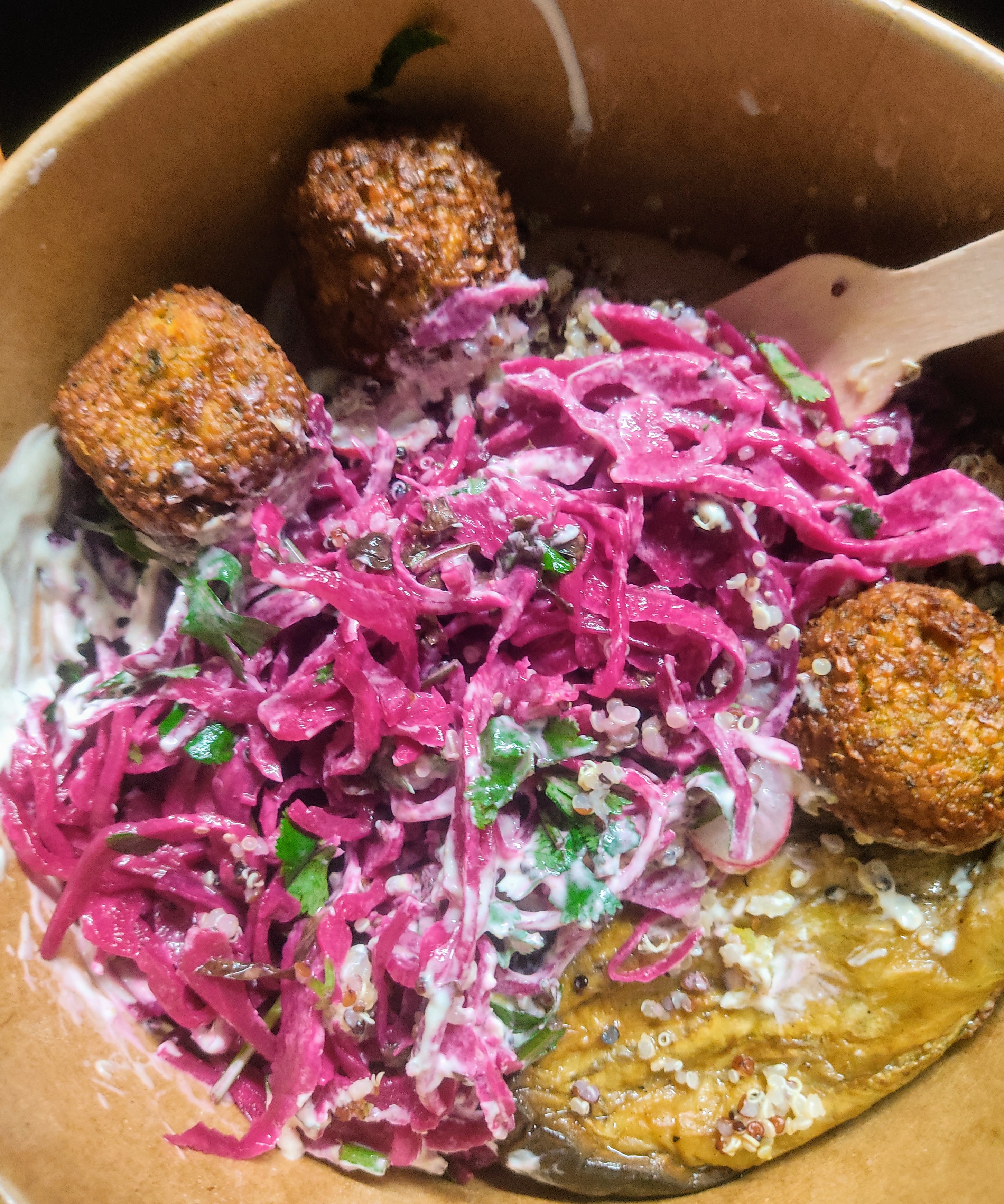 Le falafel bowl est très généreux et vraiment délicieux !! Les falafels sont justes parfait !!! Merci !!! 😋😋