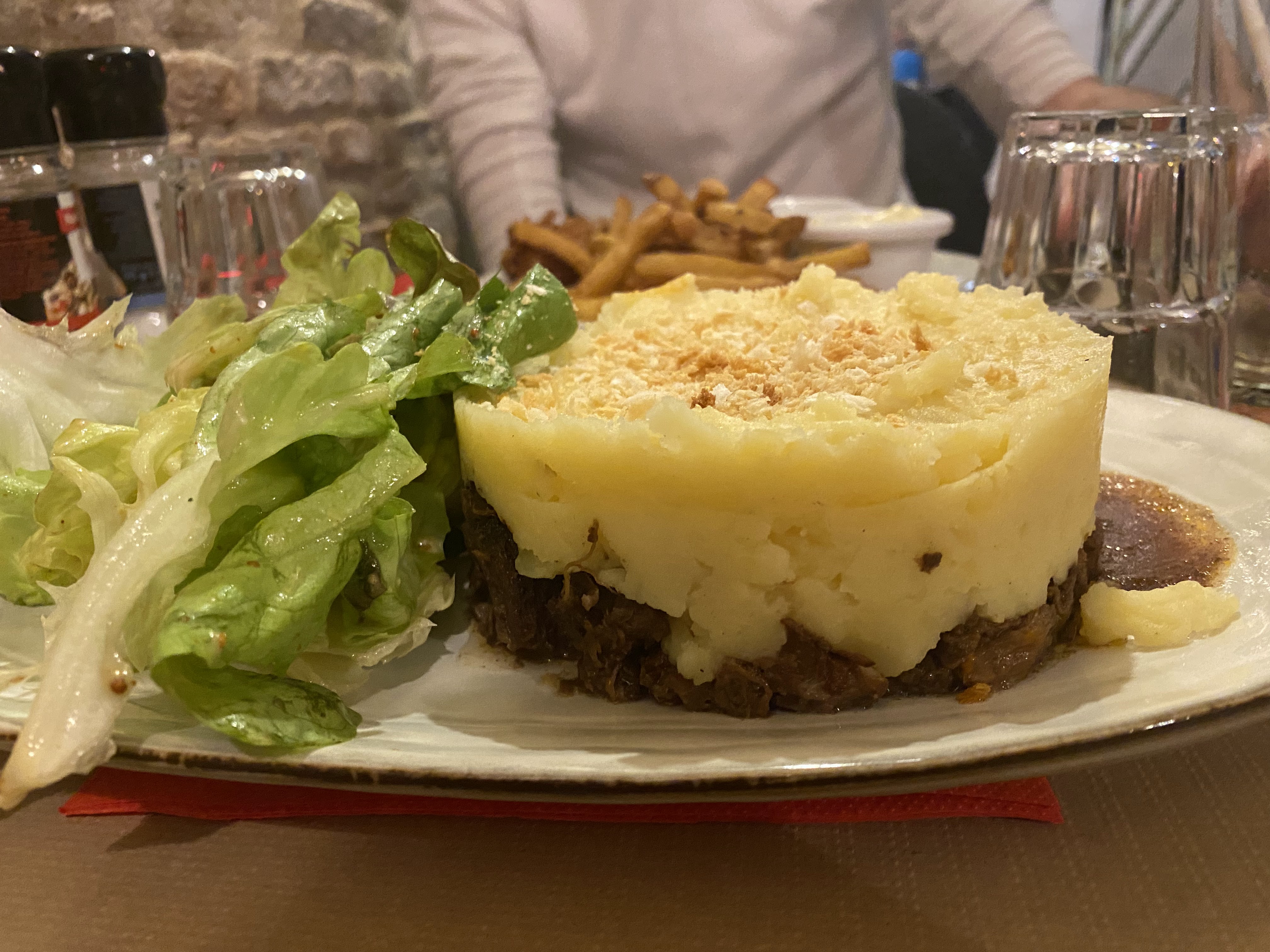 Franchement cuisine française simple authentique et bonne. J'ai choisi le parmentier de bœuf bourguignon, 25cl de brouilly, trop bien.