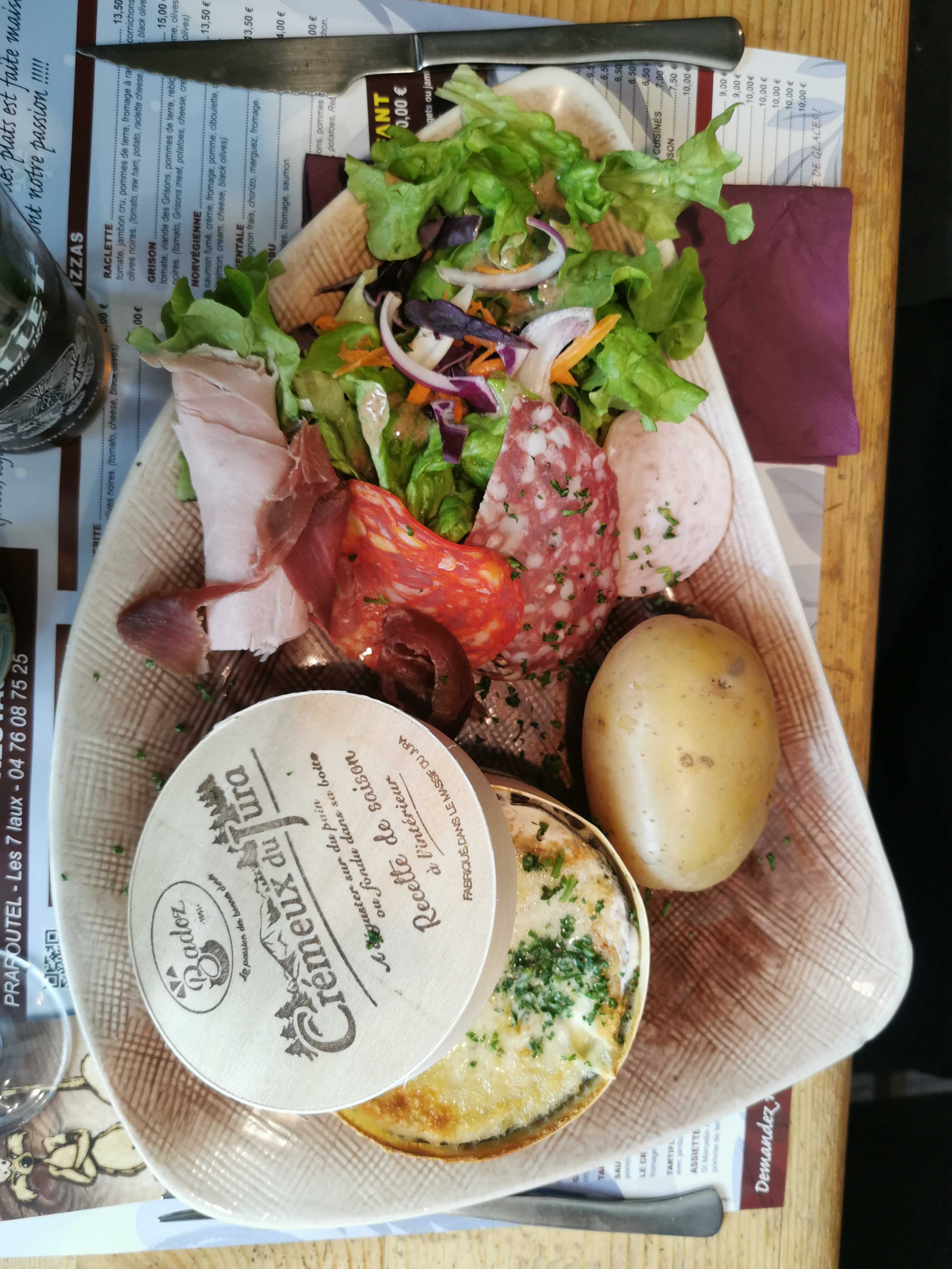 Repas en famille et amis. De bons produits repas copieux. Pour la boutade dommage qu'il n y ai plus d assiette des alpages et de tiramisu. Merci nous avons passé un moment agréable