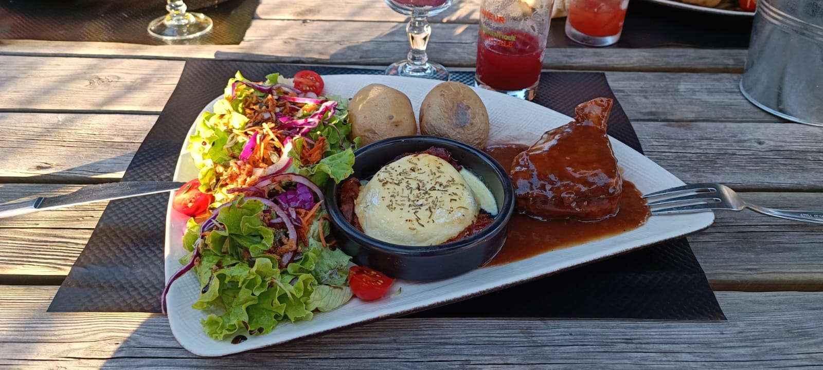 Plat très copieux, service rapide, carte des vins assez large. Une bonne adresse après les pistes ;)