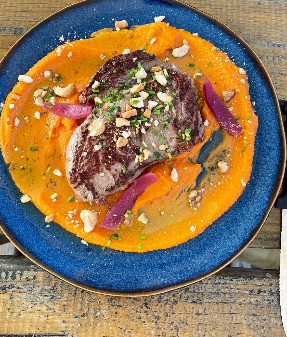 Le lieu est sublime face à l océan Superbe côté de bœuf qualité et quantité et une petite serveuse très très sympathique nous avons adoré la Siesta top top à refaire très vite Merci