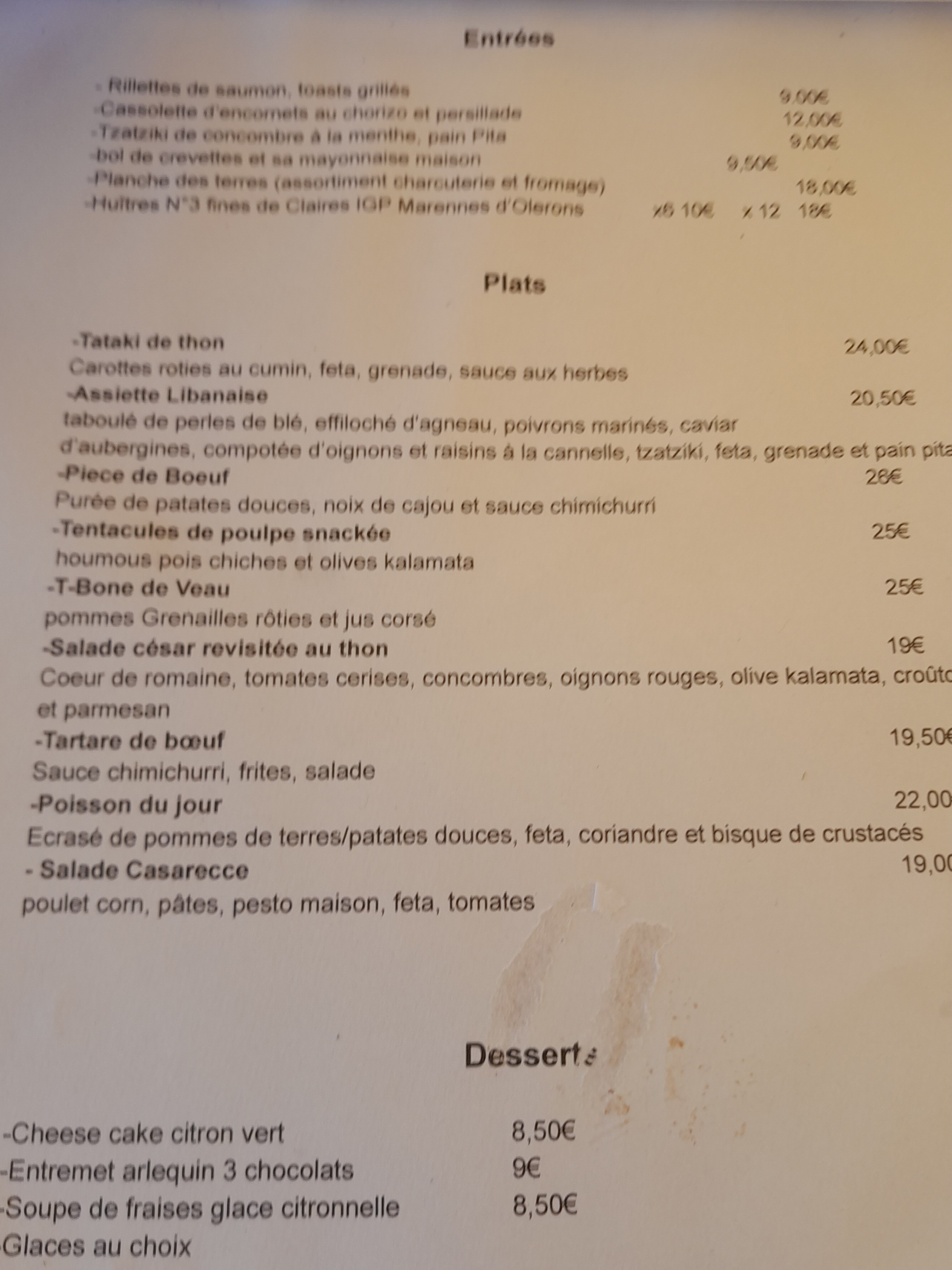 Venant tous les ans depuis 5 ans et habitués à une cuisine au top et travaillée dans un super cadre nous venons mangés confiants pour faire découvrir le restaurant à mes parents. Malheureusement extrêmement déçus par la cuisine cette fois-ci, tataki de thon préparé à l’avance (assiette et contenants froid, tataki pas préparé minute) et insipide à 24e… mes parents n’ont pas été plus convaincus par la viande (angus) et l’assiette libanaise. Nouveau chef? a changer… Dommage nous ne reviendrons plus manger malgré le cadre magnifique si la qualité reste à ce niveau, la cuisine étant la raison principale du choix d’un restaurant..