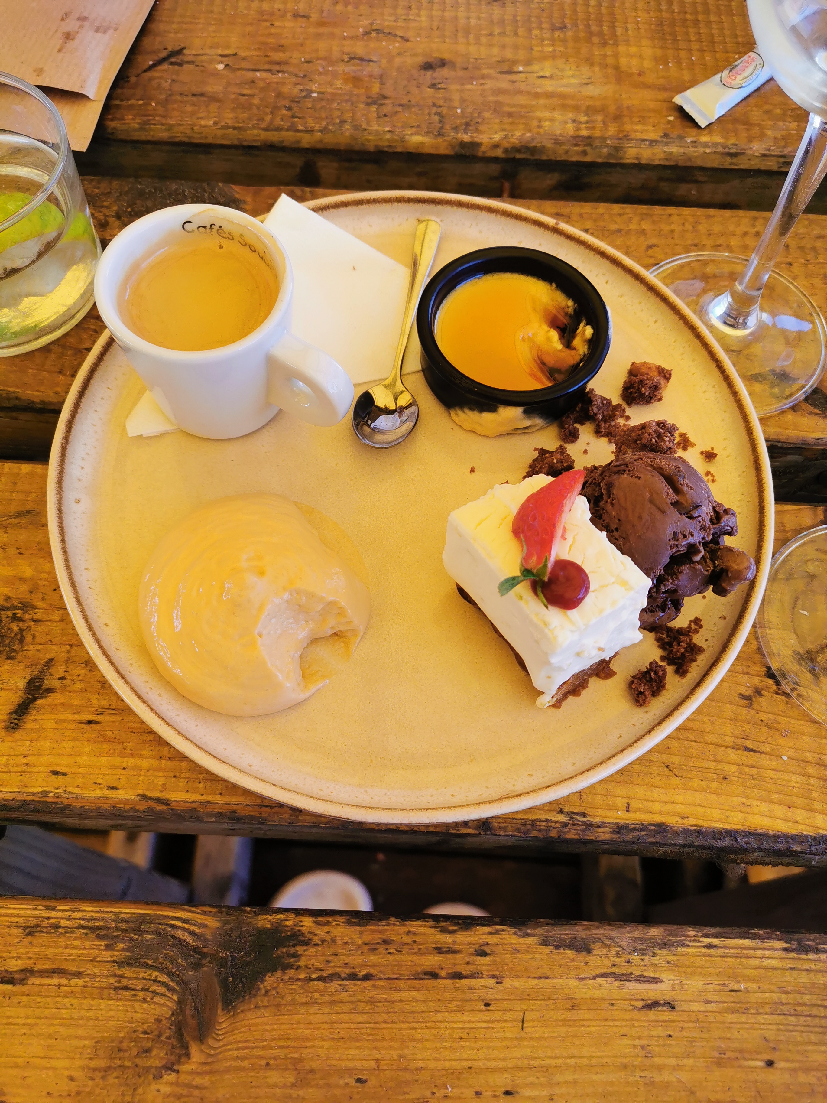 Super accueil. Super spot. Avec le soleil tout été réuni . Le serveur très sympa Nous avons pris des crêpes...légèrement tiède mais bonnes et pas cher pour 10...52 euros avec boissons. Très correct. Je vous recommande l endroit 😅