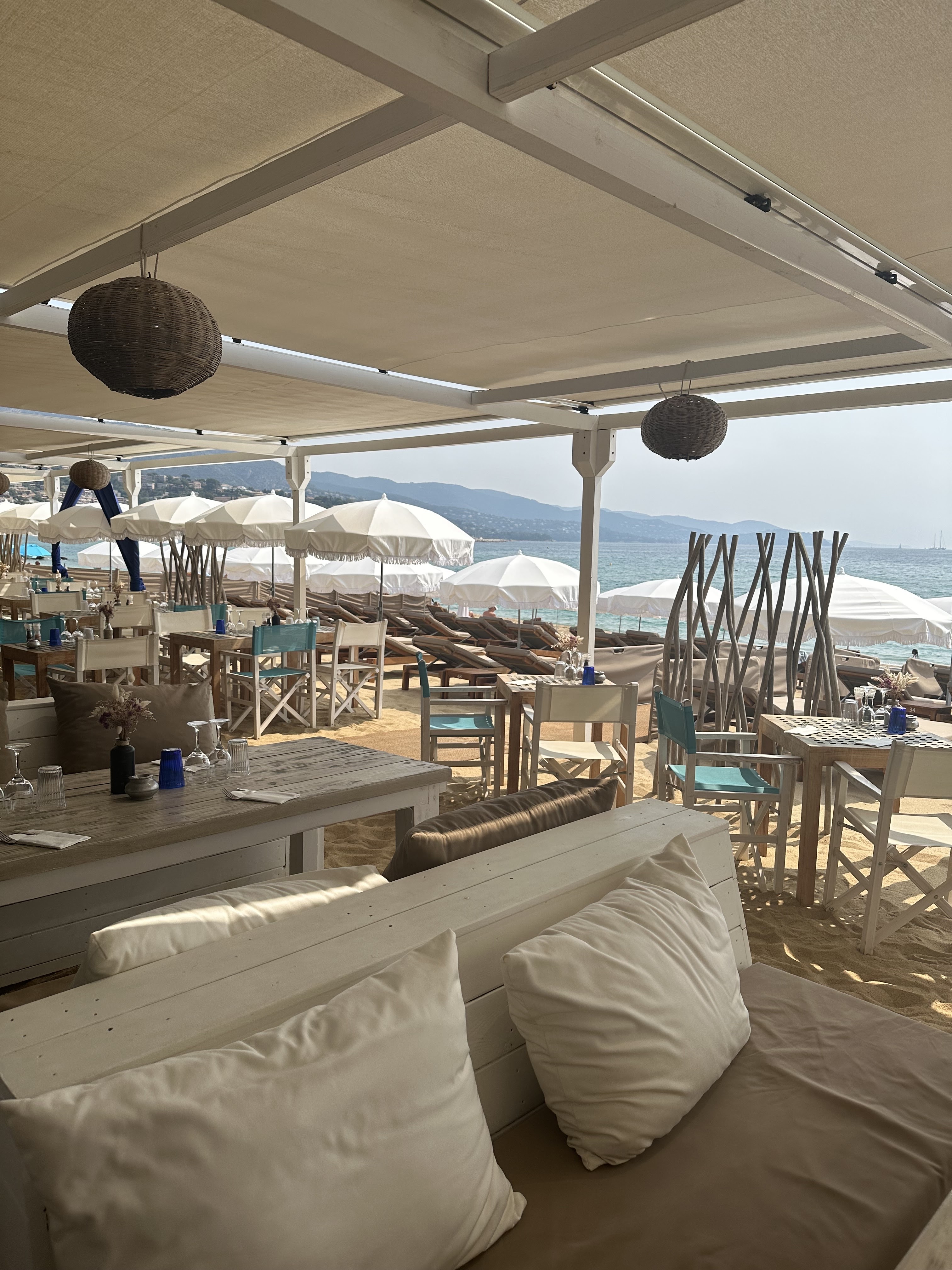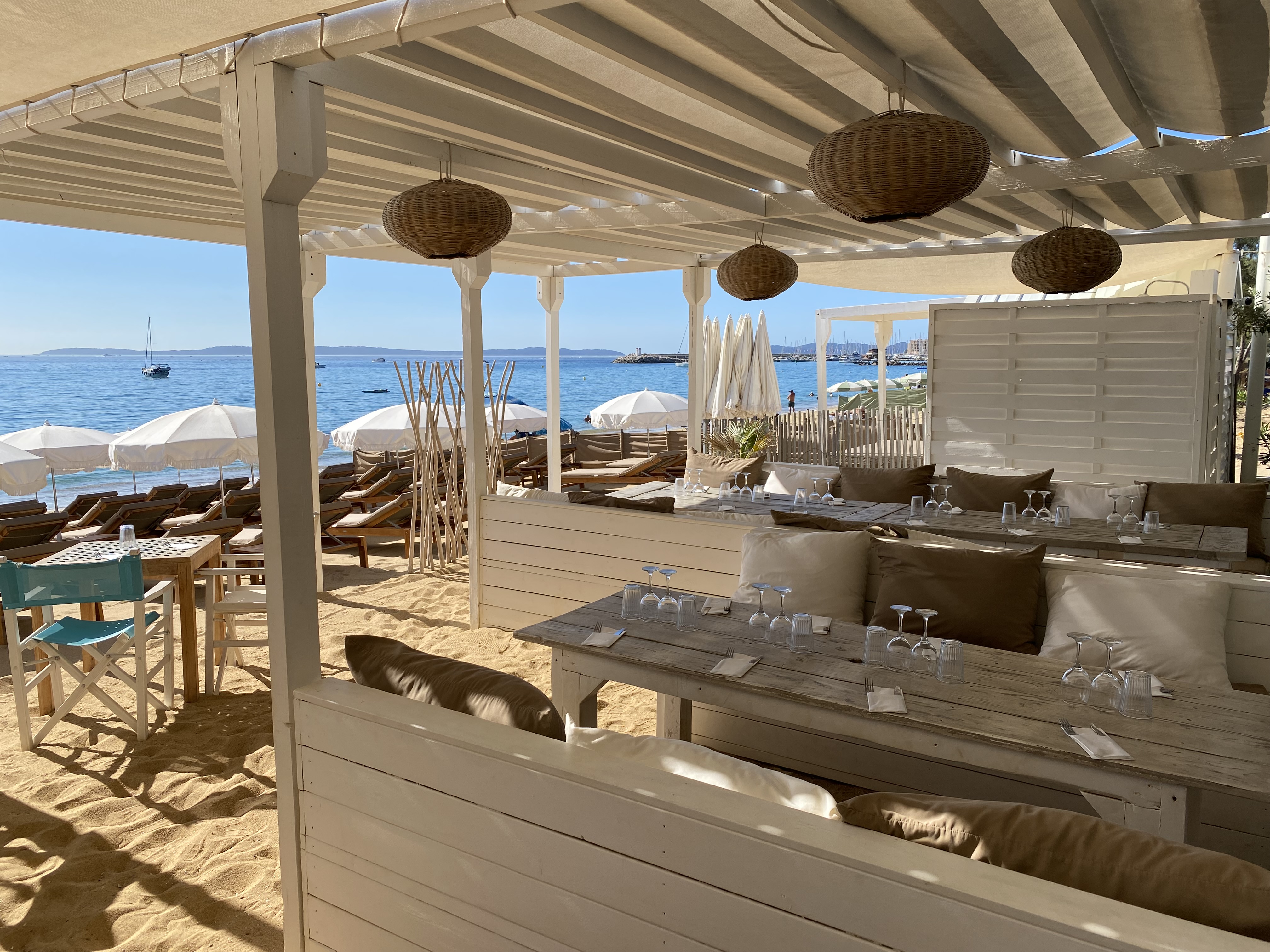 Restaurant de plage chill et confortable avec vue imprenable sur la belle plage du Lavandou