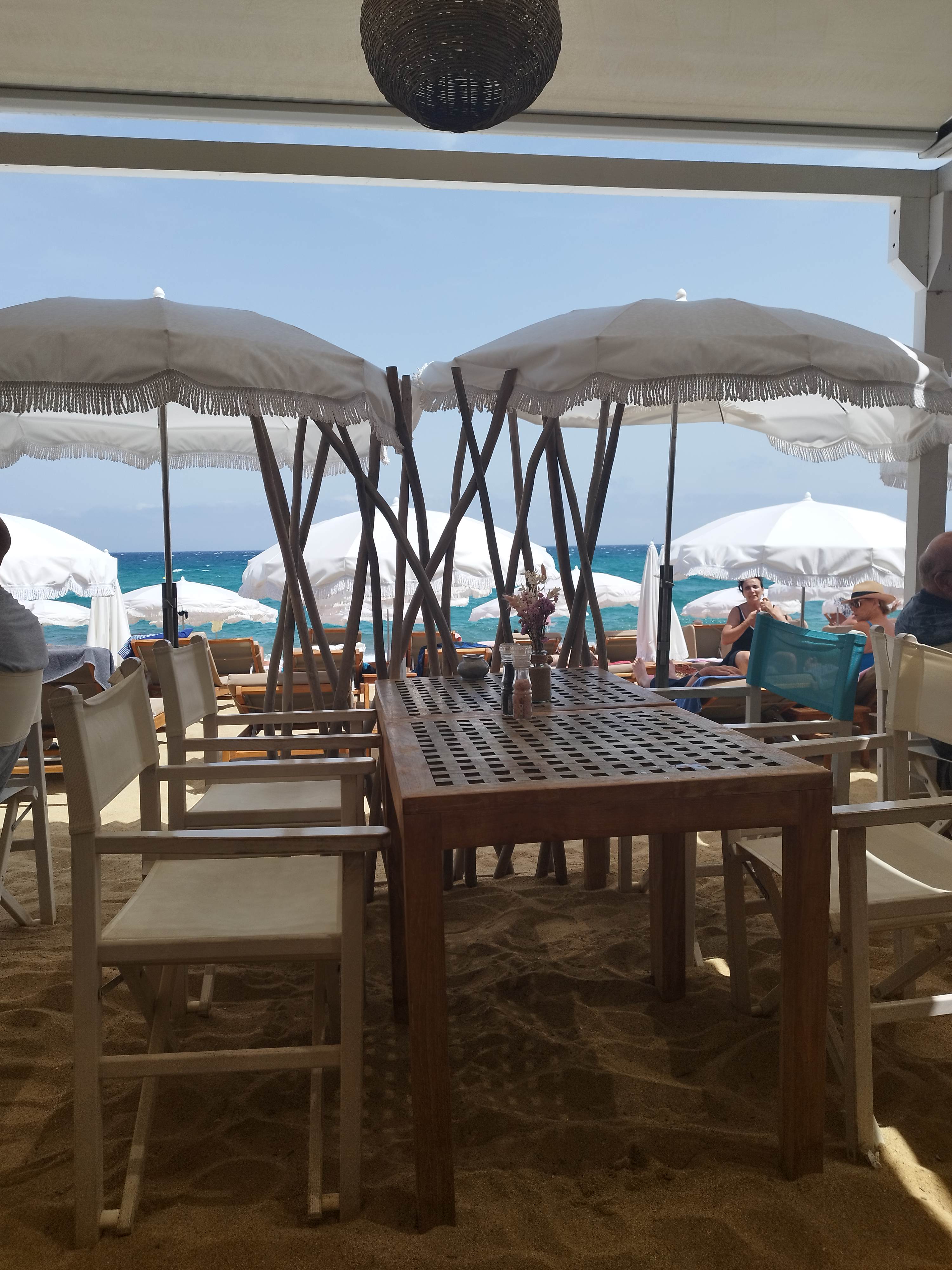 Nous y étions pour déjeuner avec nos trois enfants. Tout le monde était détendu et a pris grand soin de nous. La nourriture était vraiment délicieuse. Nous avons eu des entrées, des plats principaux, des plats pour enfants, des desserts, du vin, du café, des cocktails. Les deux heures que nous y avons passées ont été vraiment amusantes. Un bon restaurant de plage, vraiment recommandé.