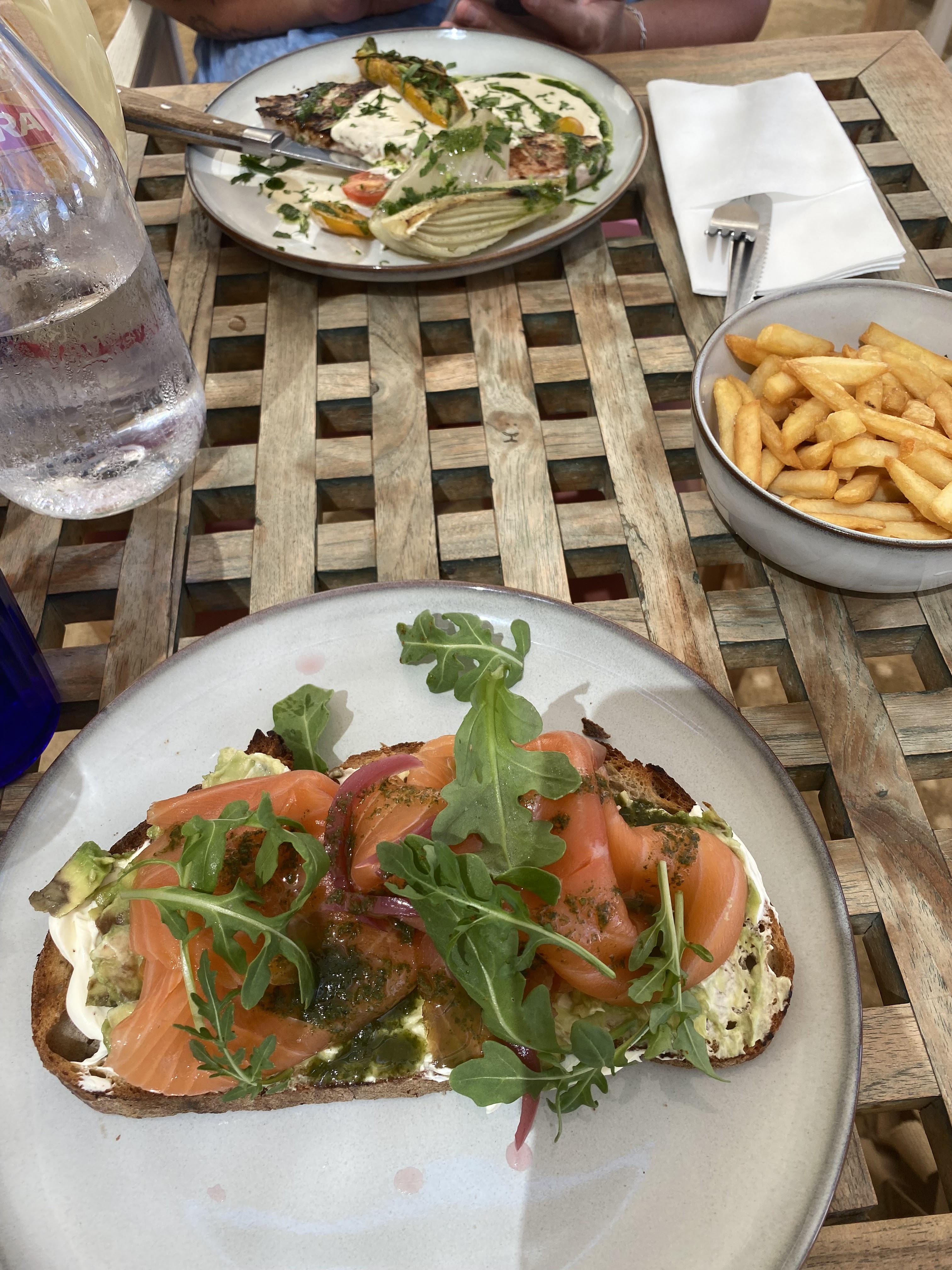 Repas délicieux au bord de l'eau.... Avec une carte produits frais.... Je vous conseille le poisson grille... Serveurs gentils et professionnels. Belle déco de plage... Merci pour ce bon moment passé.