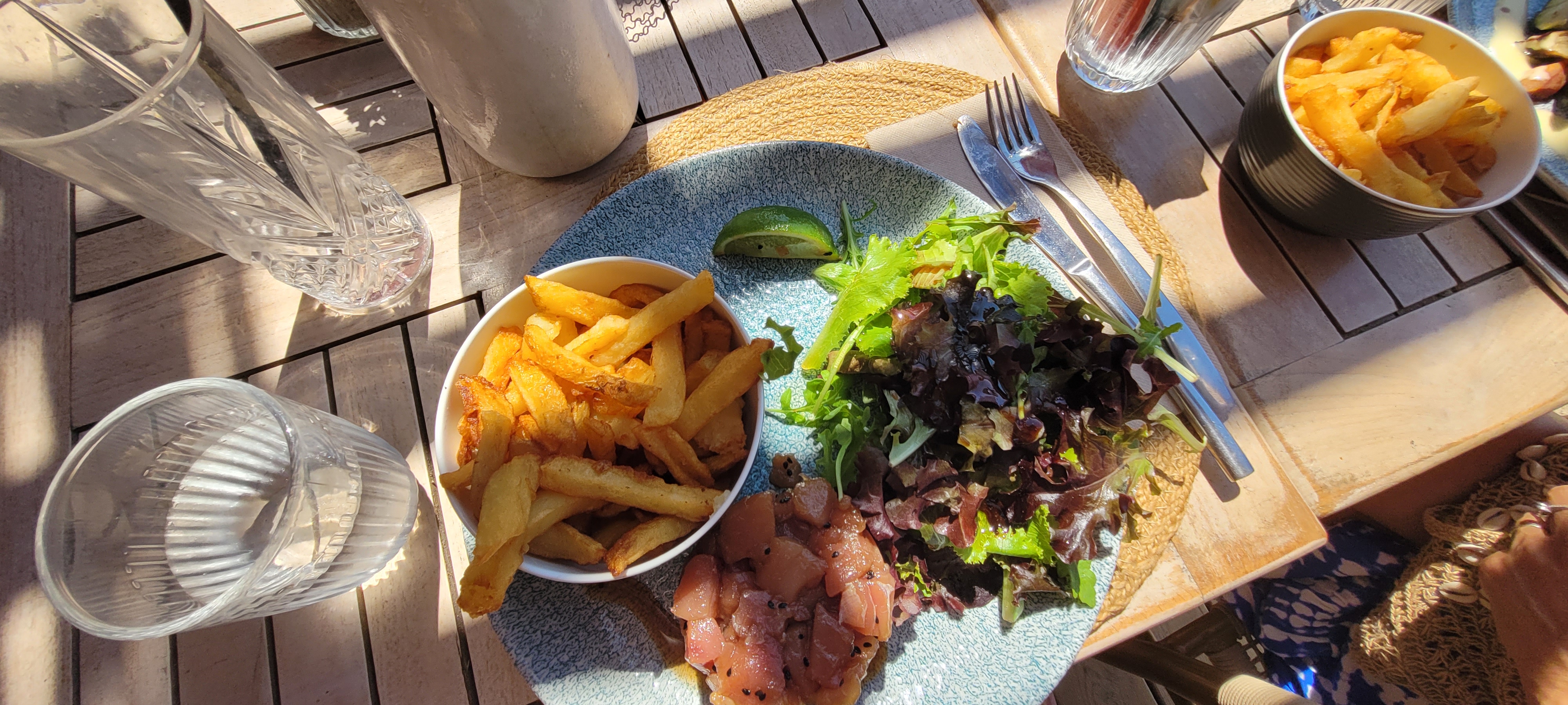 Sympa, salade basique, serveurs à l'écoute. Tout est bien. Mais le rapport qualité prix en vaut il la peine? A vous d'en juger. Pas de parkinh gratuit aux alentours, difficile deja de trouver une place dans un payant en periode estivale. Queue à l'horodateur.. J'attends de trouver mieux sur la cote