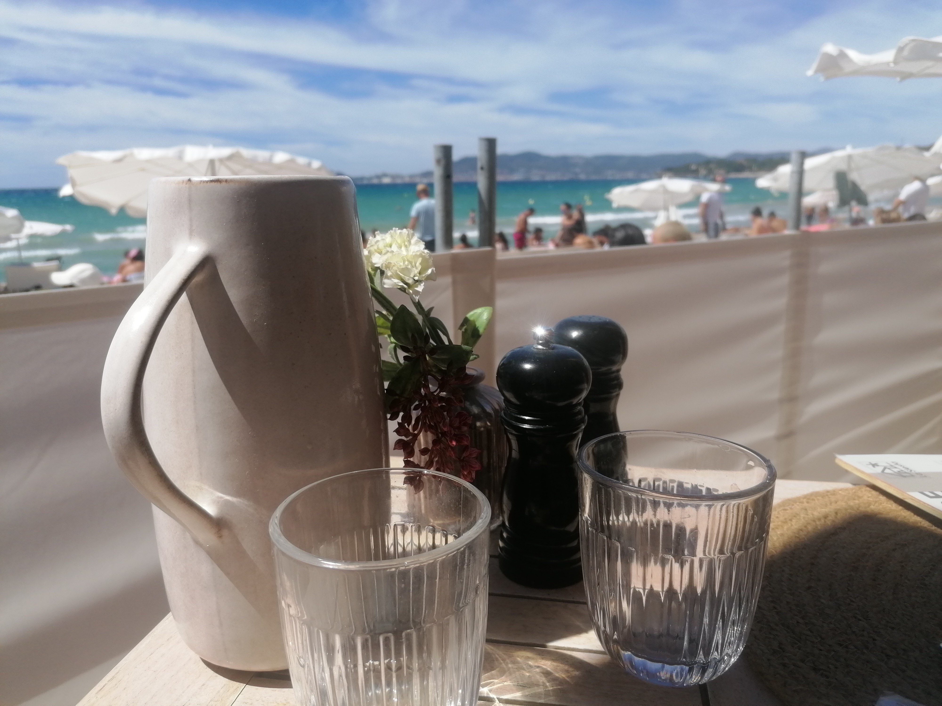 Plagistes super sympas. Vue magnifique . Service restauration impeccable. Top. Merci .