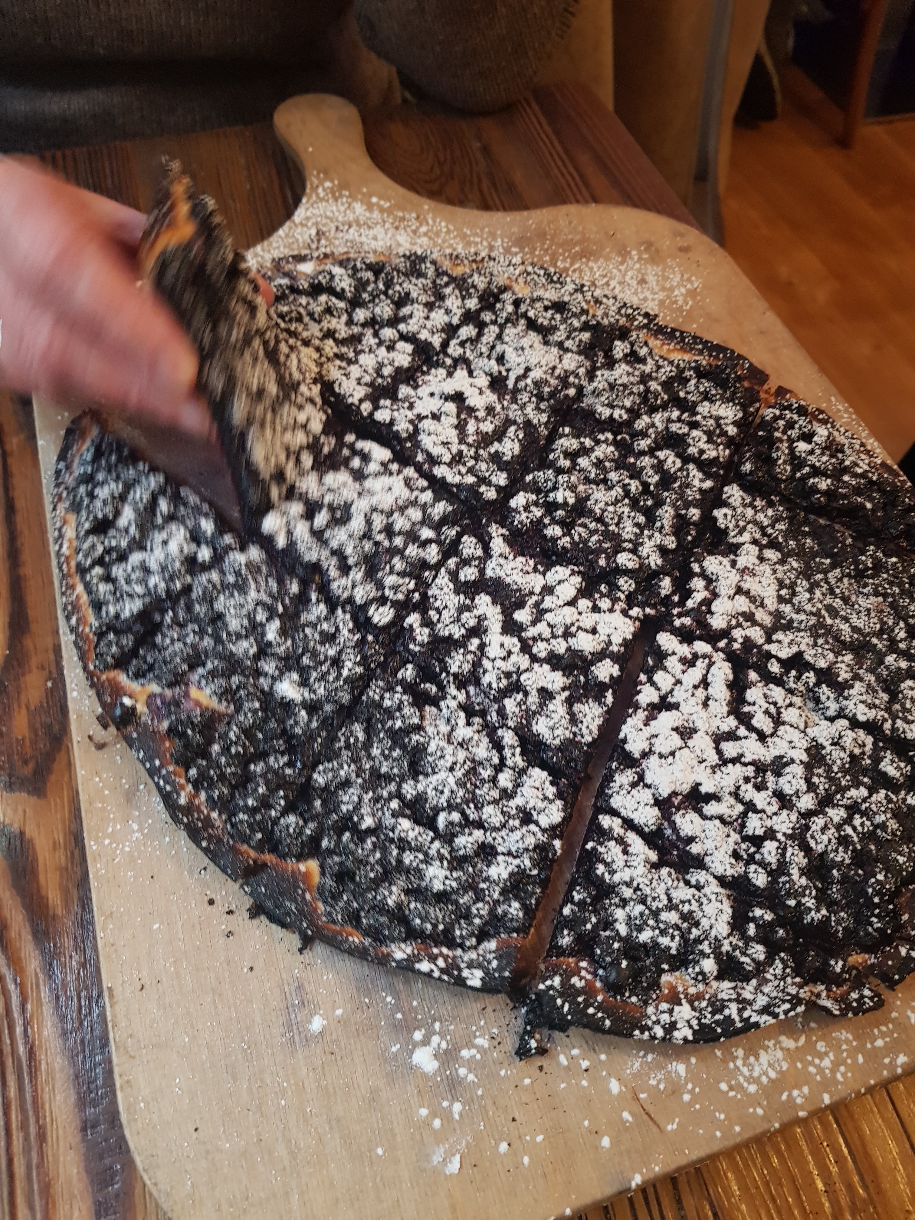 Nous sommes venus en espérant manger autre chose que la tarte flambée. Il n'y a que cela au menu et heureusement 😍. Elles sont excellentes, la pâte est d'une finesse incroyable: nous en avons pris une à l'ail des ours et une autre à la tomme fumée. Tout arrive découpé sur des planches en bois, pas de couverts...le plaisir de déguster avec les doigts. Un régal❤️ !!! Nous reviendrons s'il y a de la place car le resto est très petit.