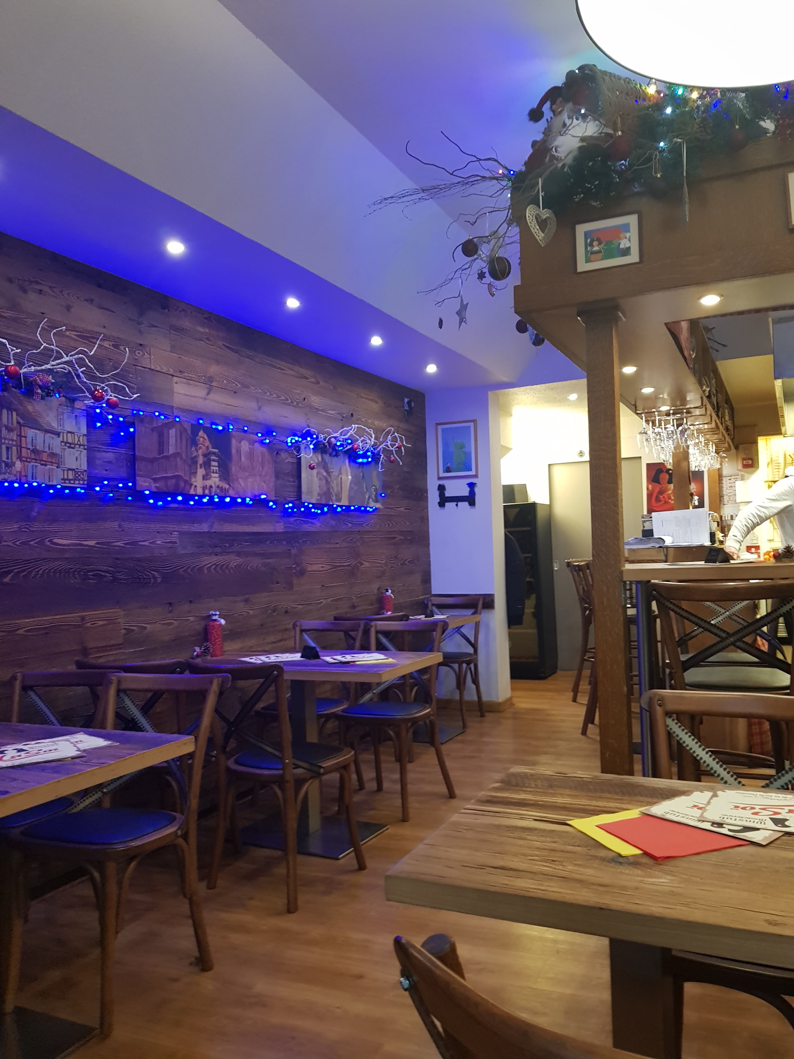 A réserver impérativement lors de la période des marchés de Noël, midi ou soir La salle est petite et se remplit très vite. L'ambiance y est chaleureuse. Les tartes flambées sont un délice ! Cette adresse est recommandé sur certains guides ou blogs pour de bonnes raisons !
