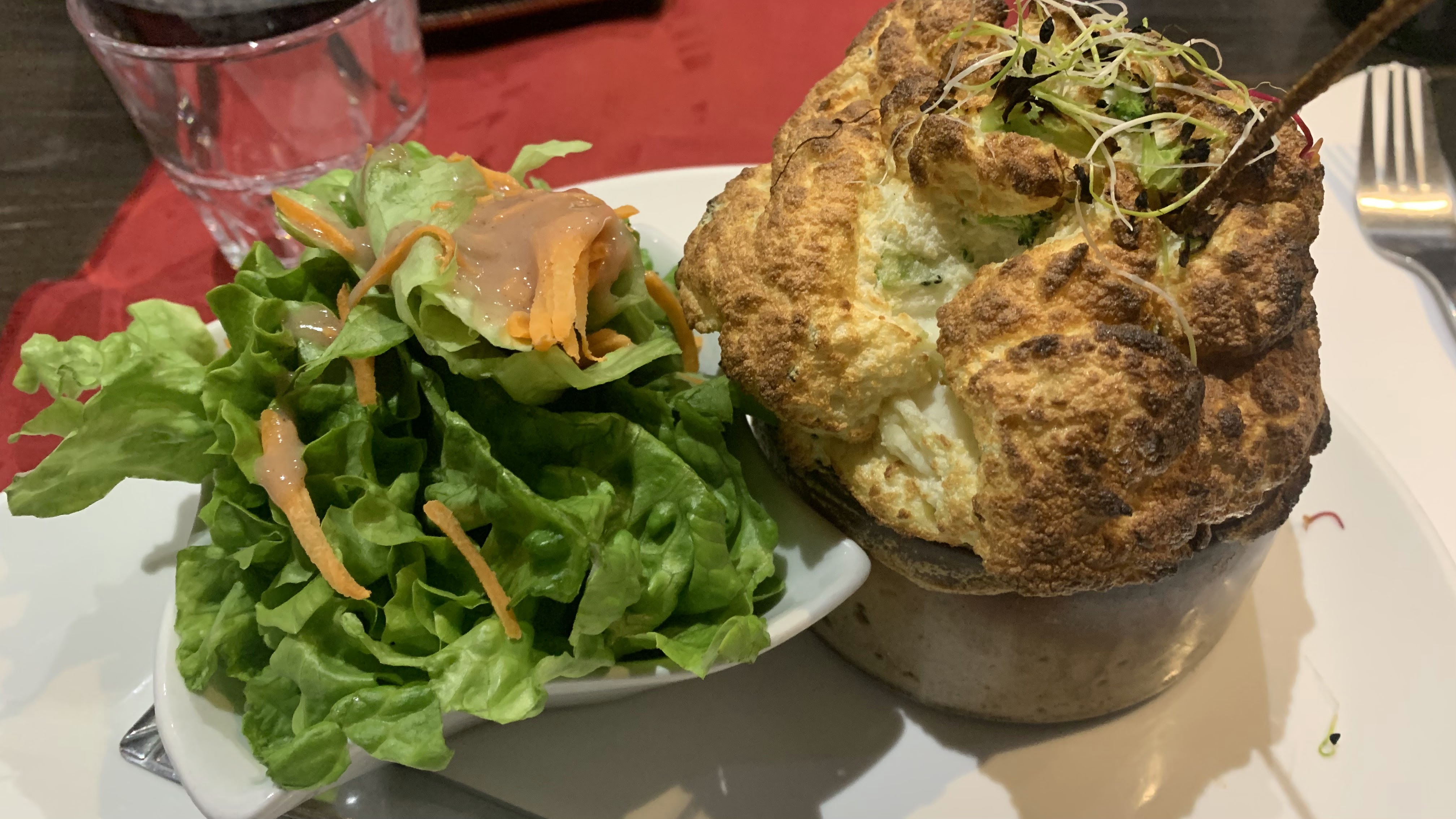 Très bonne expérience concernant la découverte du soufflé ! Bonne ambiance, très bon accueil. Soufflé végétarien (voir photos)