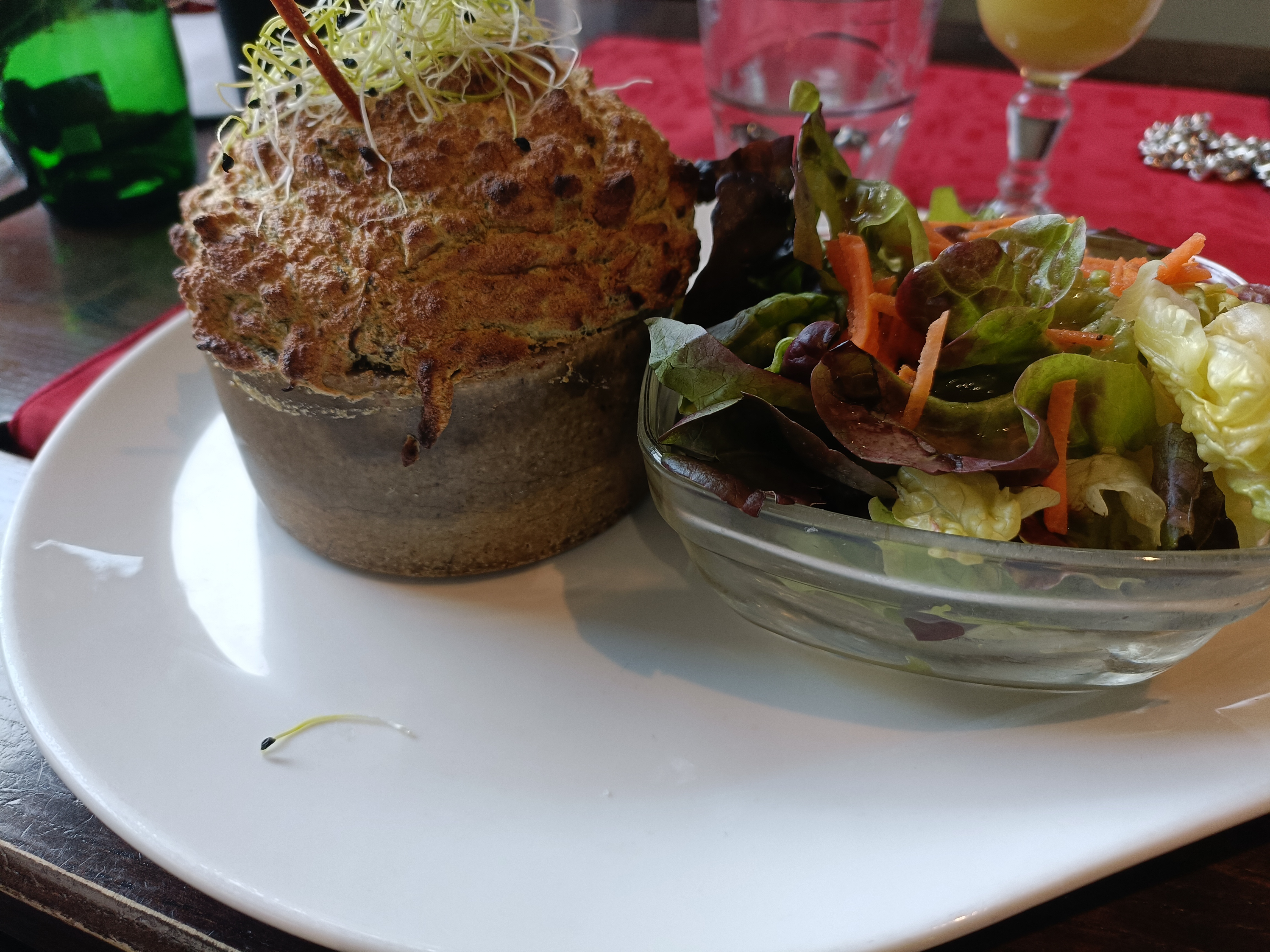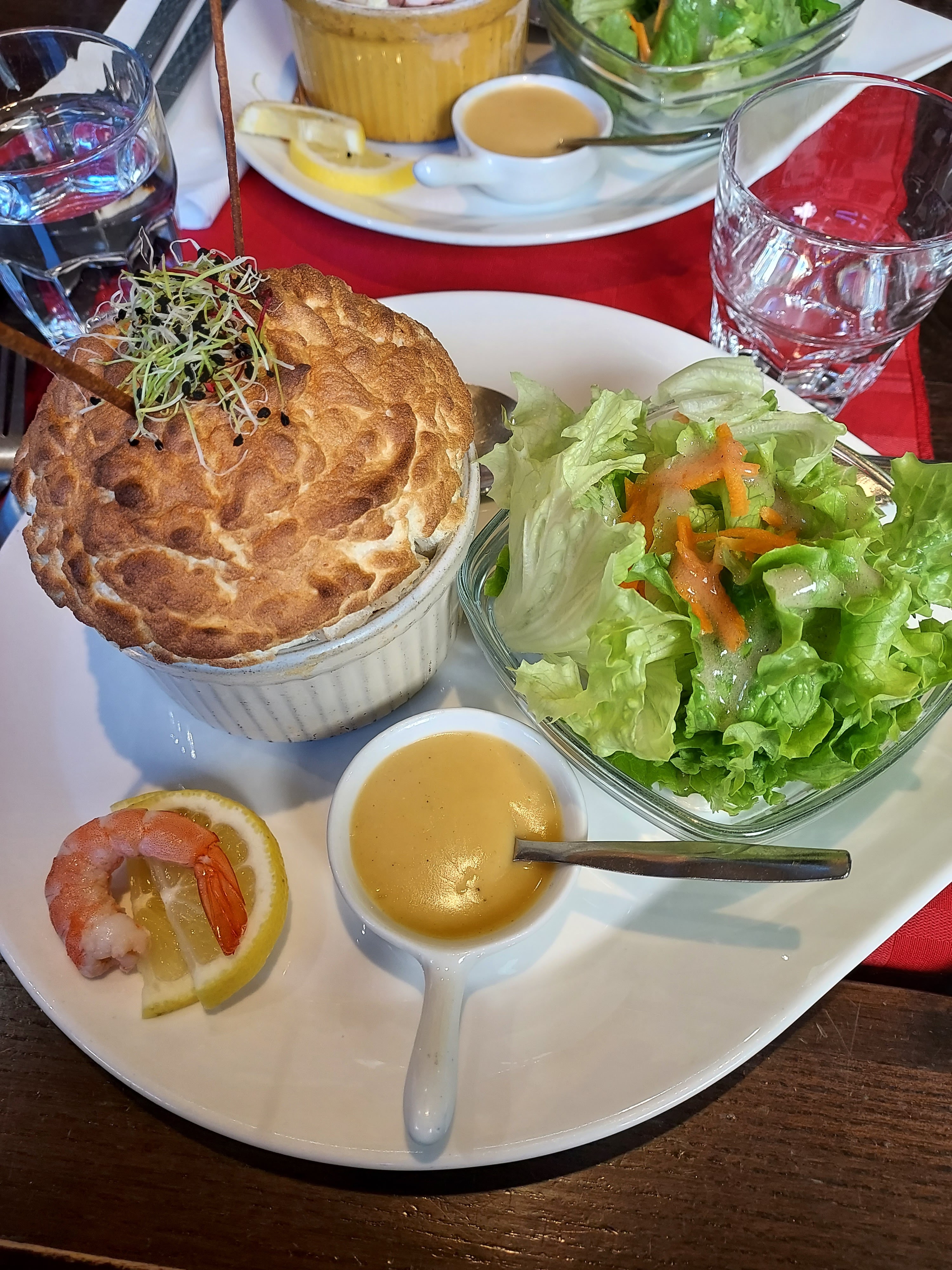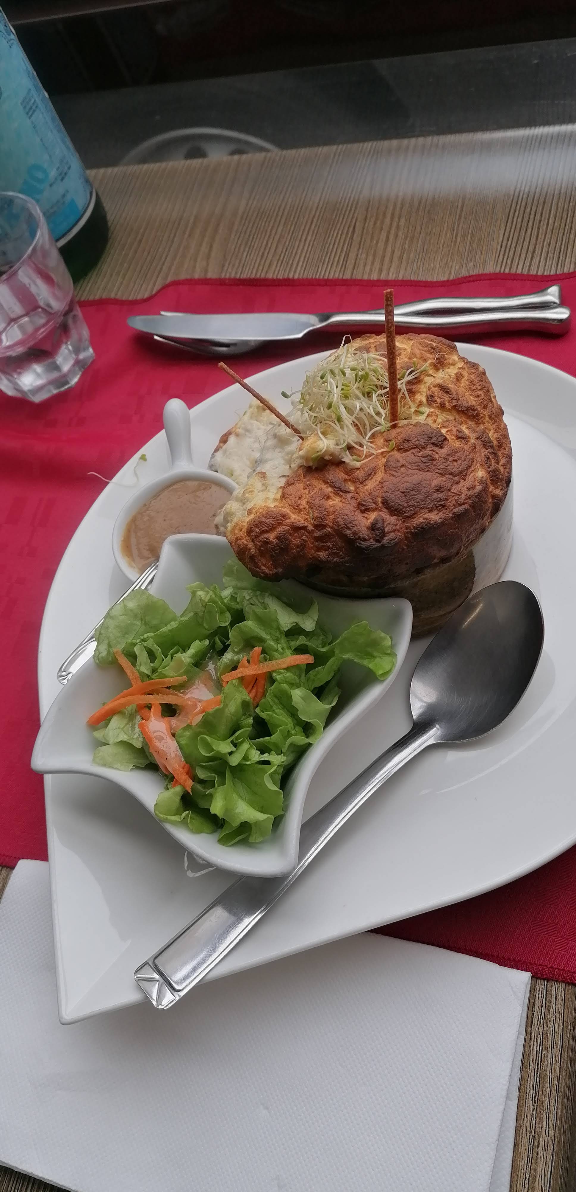 Un bon moment autour de plats typiques de la cuisine française mais rarement servis en restaurant: les soufflés. Le personnel est aux petits soins, au top! 😁