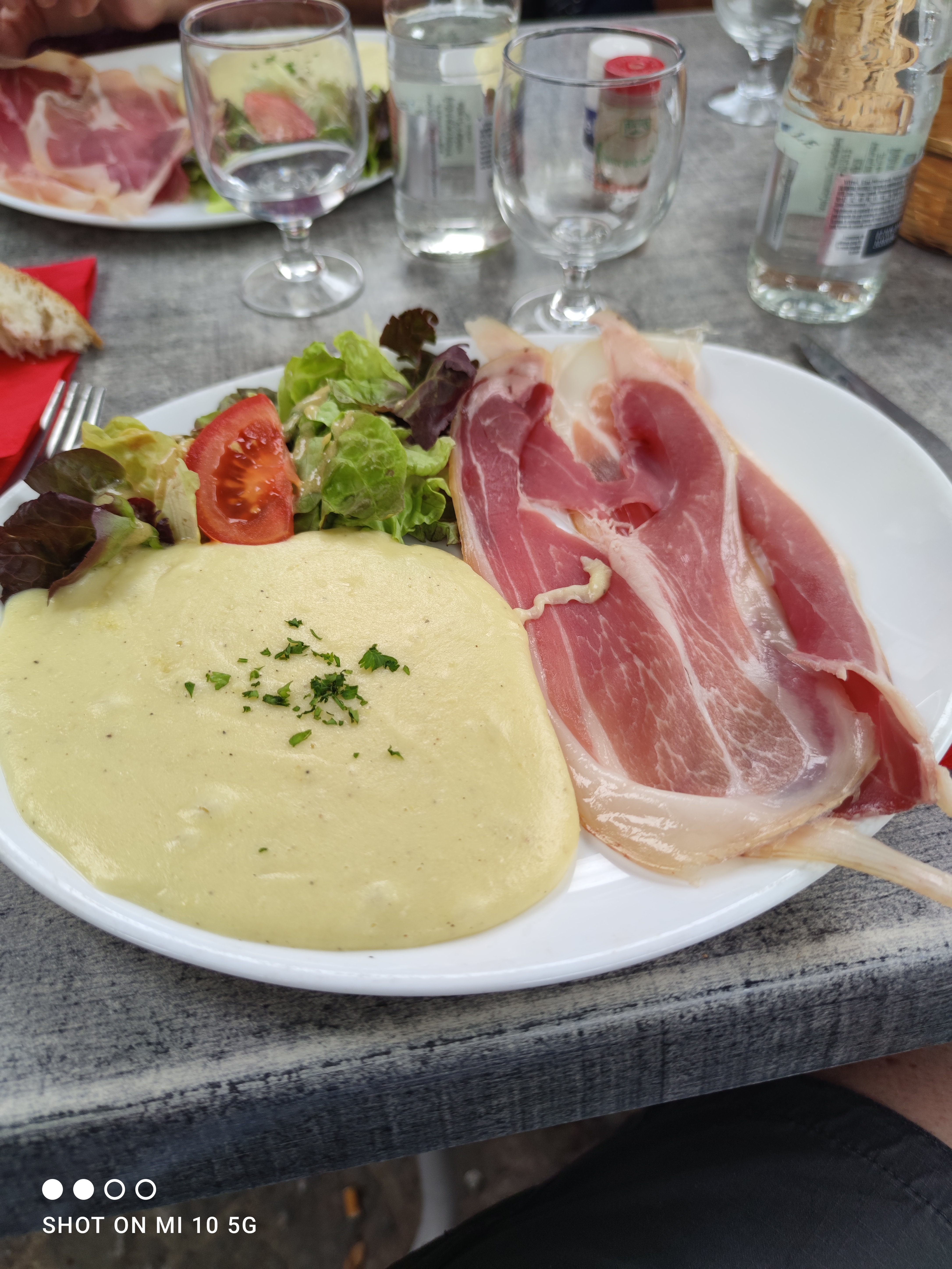 Cuisine bonne et généreuse. La Truffade servie dans la poêle est excellente. On reviendra en hiver pour manger dans la salle! D' un premier abord assez réservé la serveuse est très sympathique. Je recommande ce restaurant. Très bon rapport qualité prix!
