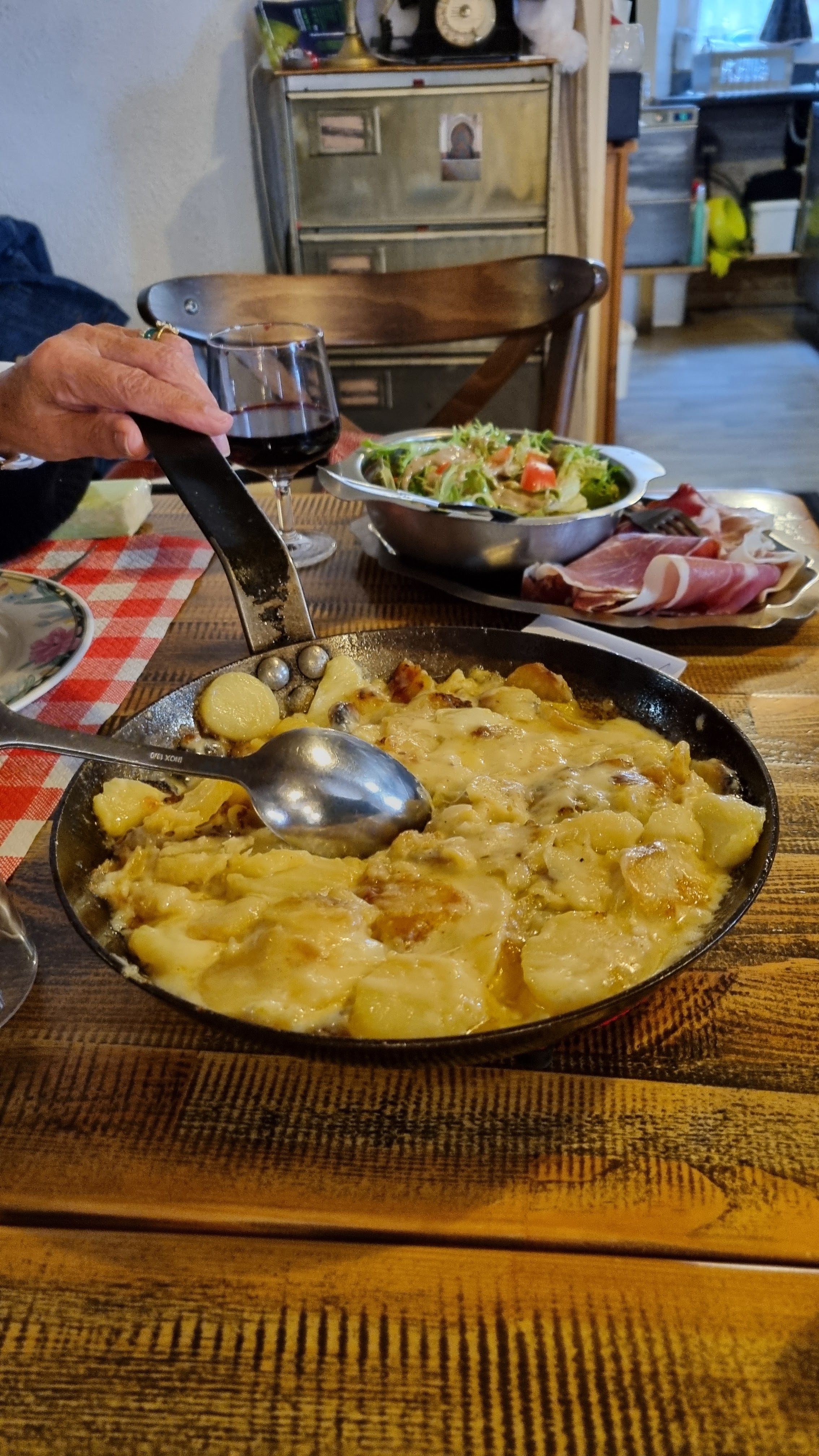 Un super accueil. Une équipe bienveillante qui n'incite pas à la consommation : la dame nous a conseillé de ne pas prendre d'entrée avant la truffade. Et elle m'a proposé du jambon blanc vu que j'étais enceinte. Truffade délicieuse et copieuse.