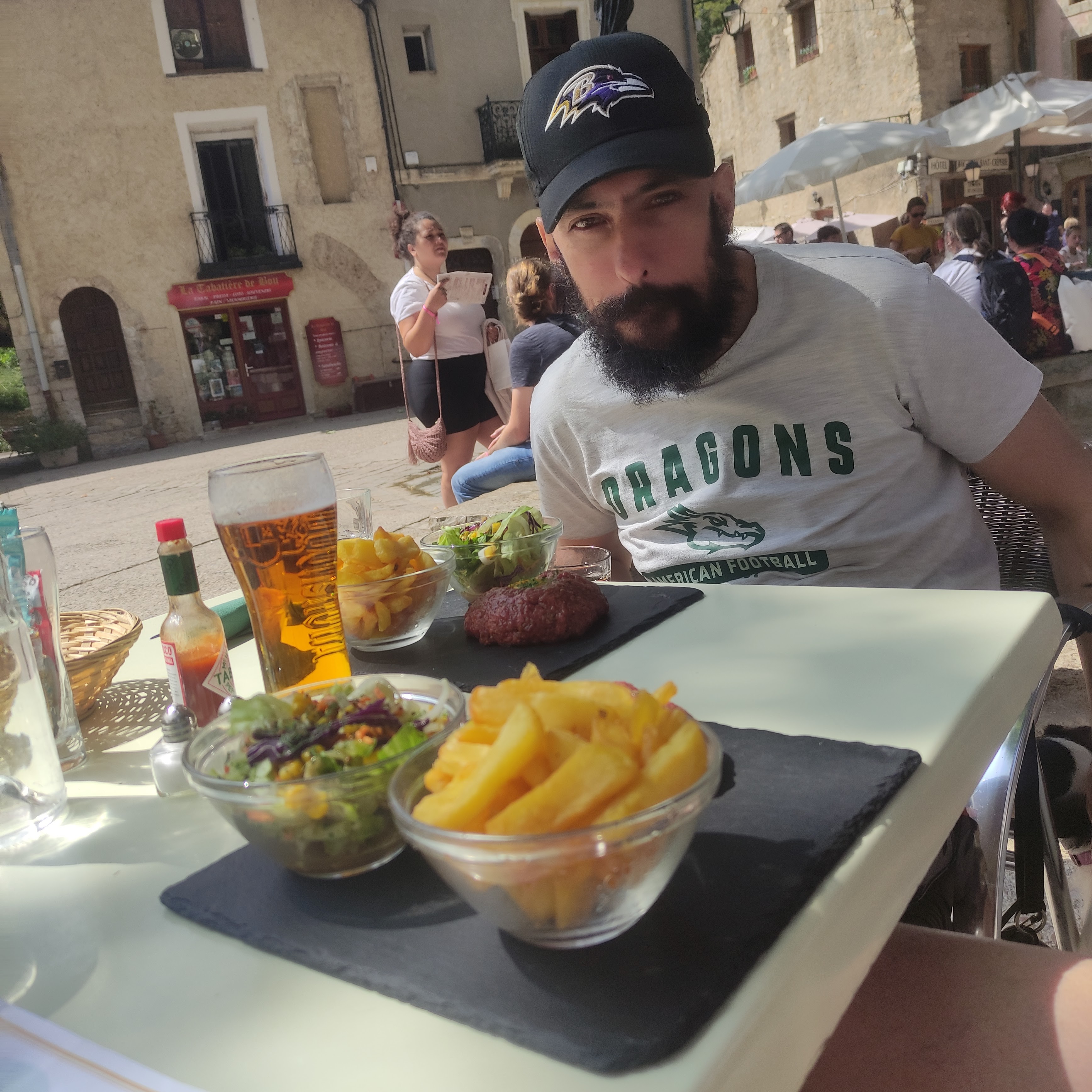 Super accueil, plats copieux dans une ambiance décontractée.La bonne humeur du serveur . Terrasse agréable. Un bon moment à conseillée. .