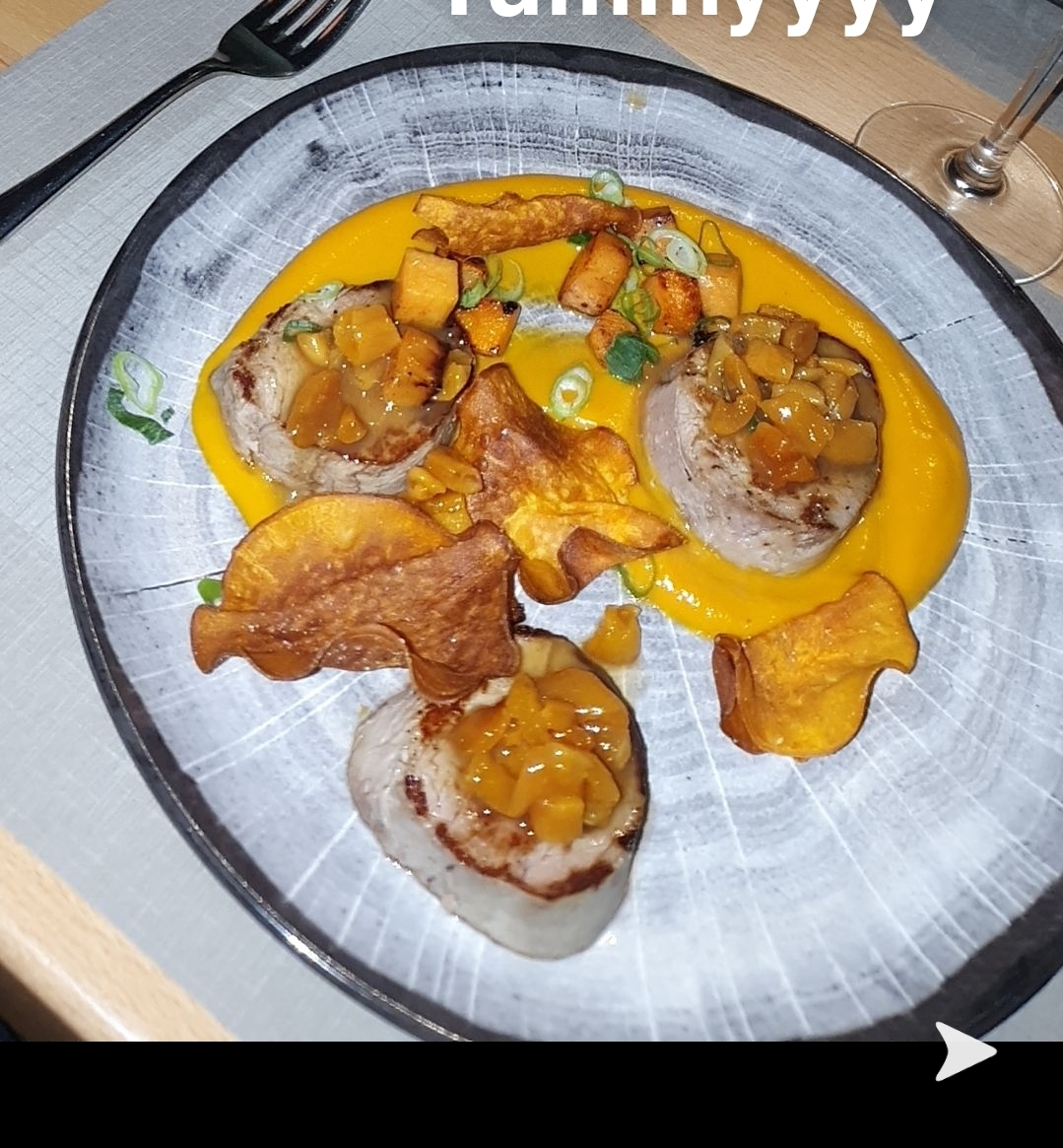 Deco original chic et tendance, le calamar grillé et sa sauce etait juste une tuerie! En suggestion du jour nous avons poursuivi avec un homard et ses légumes grillés, un vrai confort. Seul bémol, nous étions assis juste à côté de la porte d entrée (courant d air à chaque passage) mais le serveur qui était au top a su réagir en nous proposant de prendre notre dessert sur la mezzanine. Au top ! Nous reviendrons manger c est certain.
