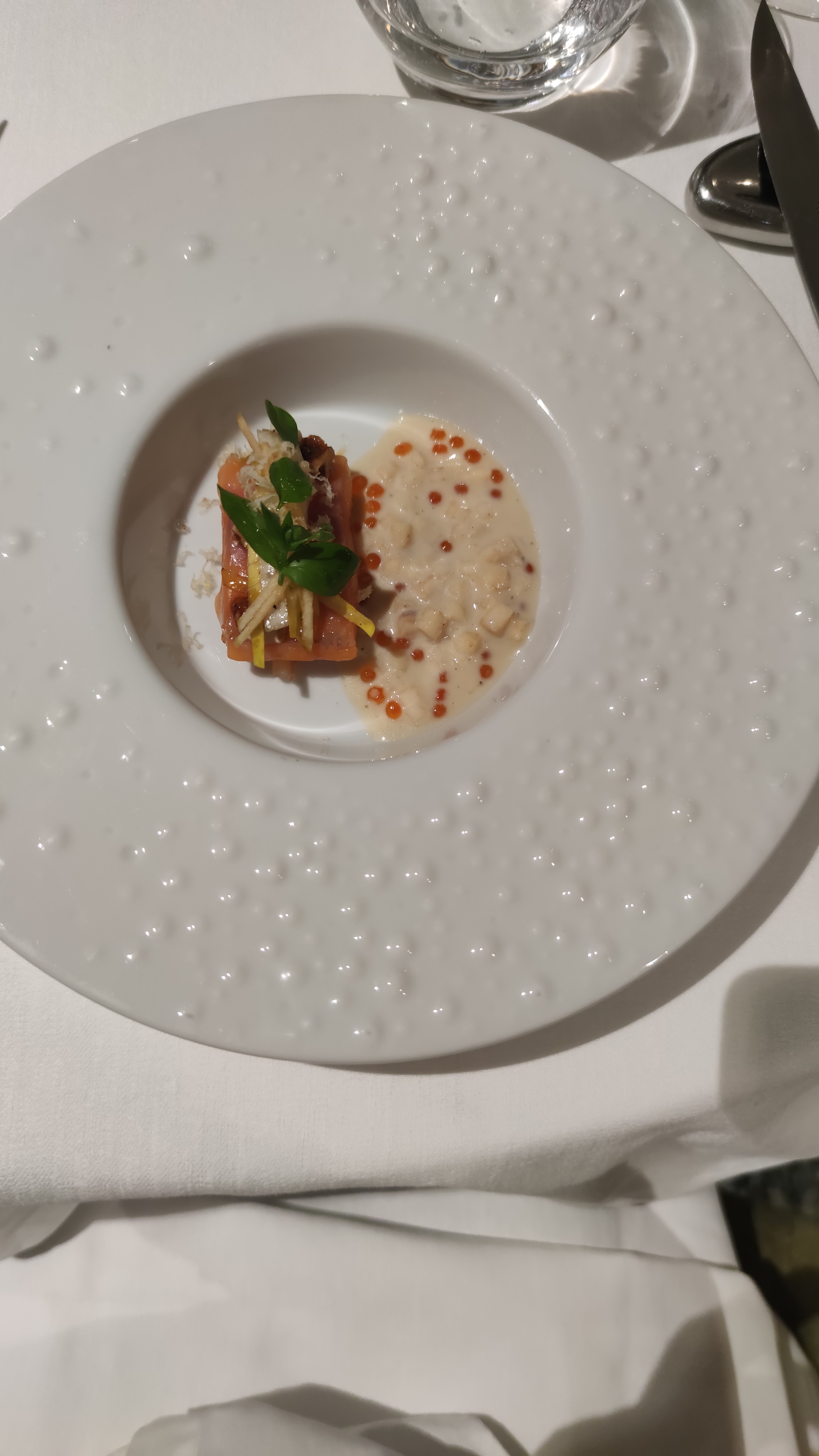 Différents plats trop salés, mais vraiment de trop !!! Du coup plus de goût Seule une st jacques parfaite. Les autres plats se cuisinent avec plus de saveur chez soi même ! Pas très chaud non plus, ni en salle d'ailleurs. Pourtant j'étais hyper enjouée d'y aller goûter cette cuisine d'exception enfin c'est vendu ainsi ... La quantité est insuffisante et fait peur dès le premier plat. Vraiment très déçue même si prévenue. Pas de fast food qui sert sur la route du retour Le service pas mal belle histoire alléchante tant que l'on ne goûte pas. On ne parlera pas du prix en partant qui est une aberration Trop dommage vraiment. Le personnel est vraiment agréable en revanche. Mais ça ne compense pas les autres points .