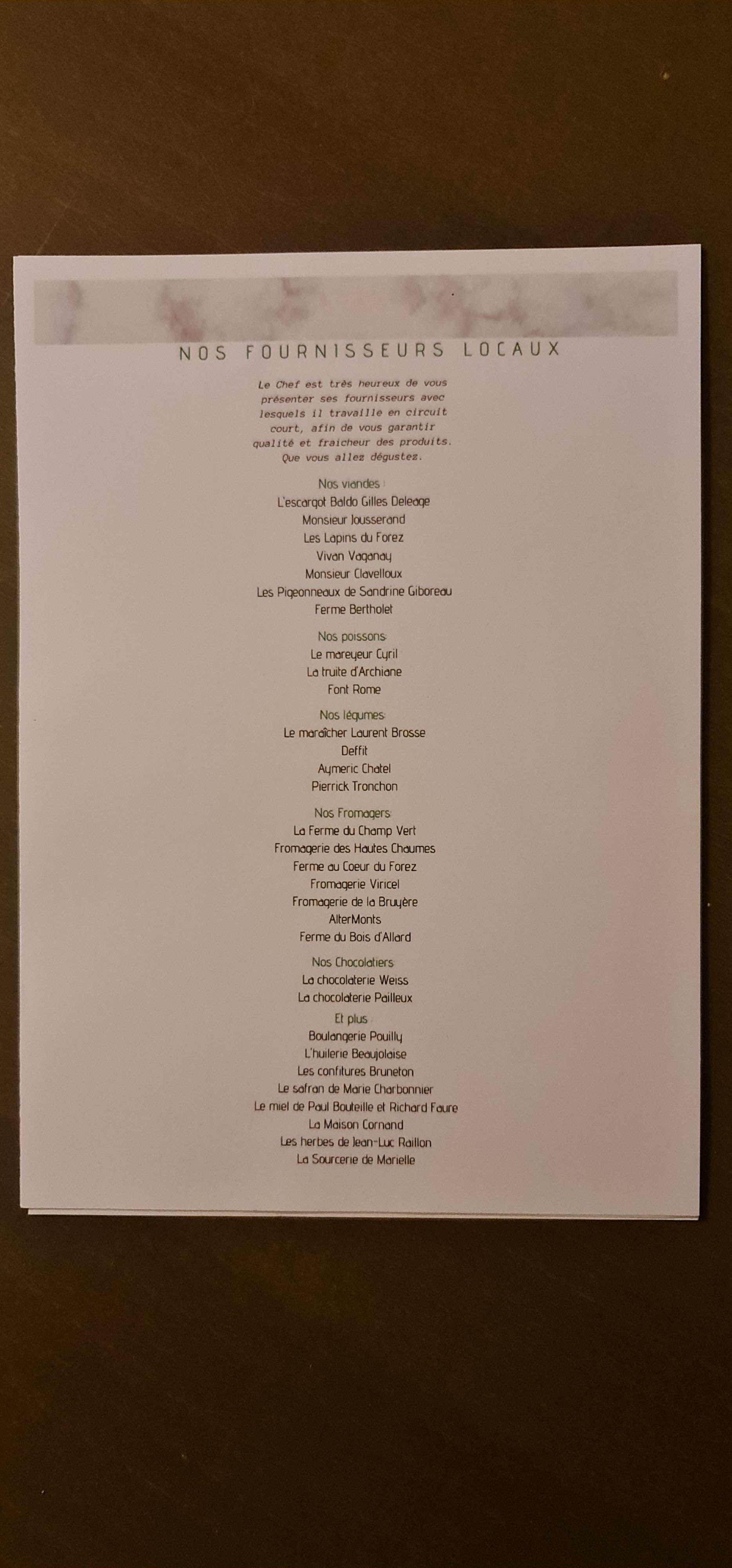 Excellent 🤩 vraiment nous sommes ressortis conquis, sur un nuage… un moment hors du temps! Par où commencer?? Une équipe soudée et professionnelle qui connaît sa partition sur le bout des doigts… des plats originaux, LOCAUX issus de produits frais… chaque plats est décris avec le nom des producteurs… le sommelier d’une class ! Et pour finir Clémence… la maitre d’hôtel… la maitre d’orchestre un grand bravo… merci pour le petit 🎁 Juste l’envie d’y revenir 🙏❤️