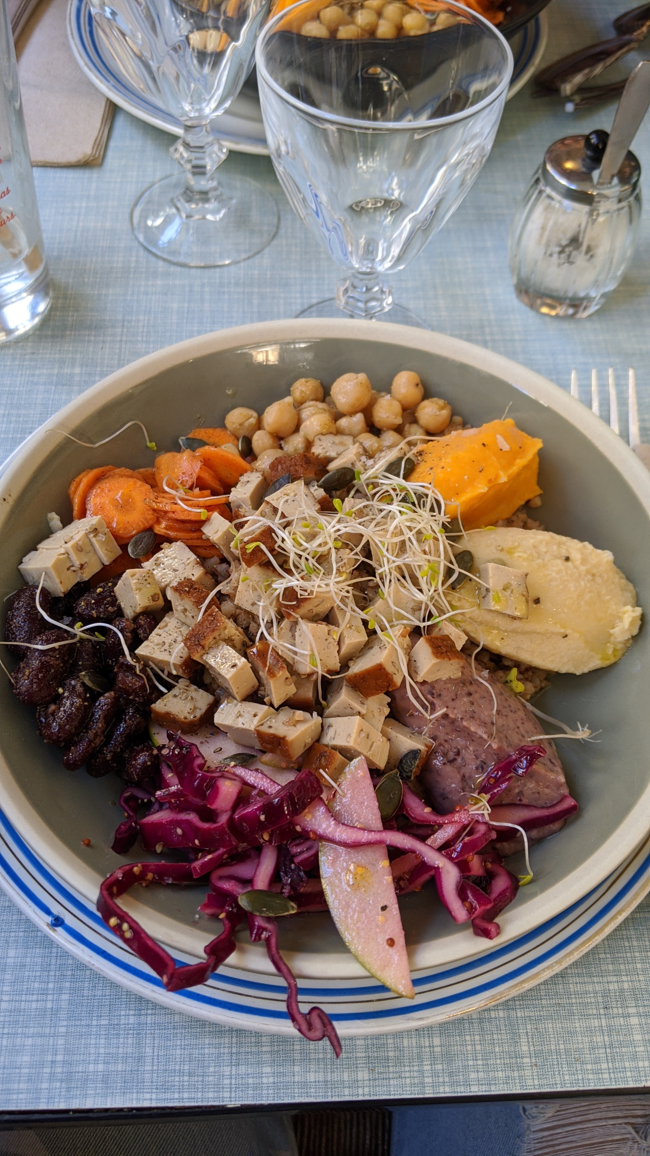 Nous avons eu deux bols de lentilles avec des purées de légumes. C'était vraiment fantastique ! Les goûts sont si vifs et inattendus. Délicieux!