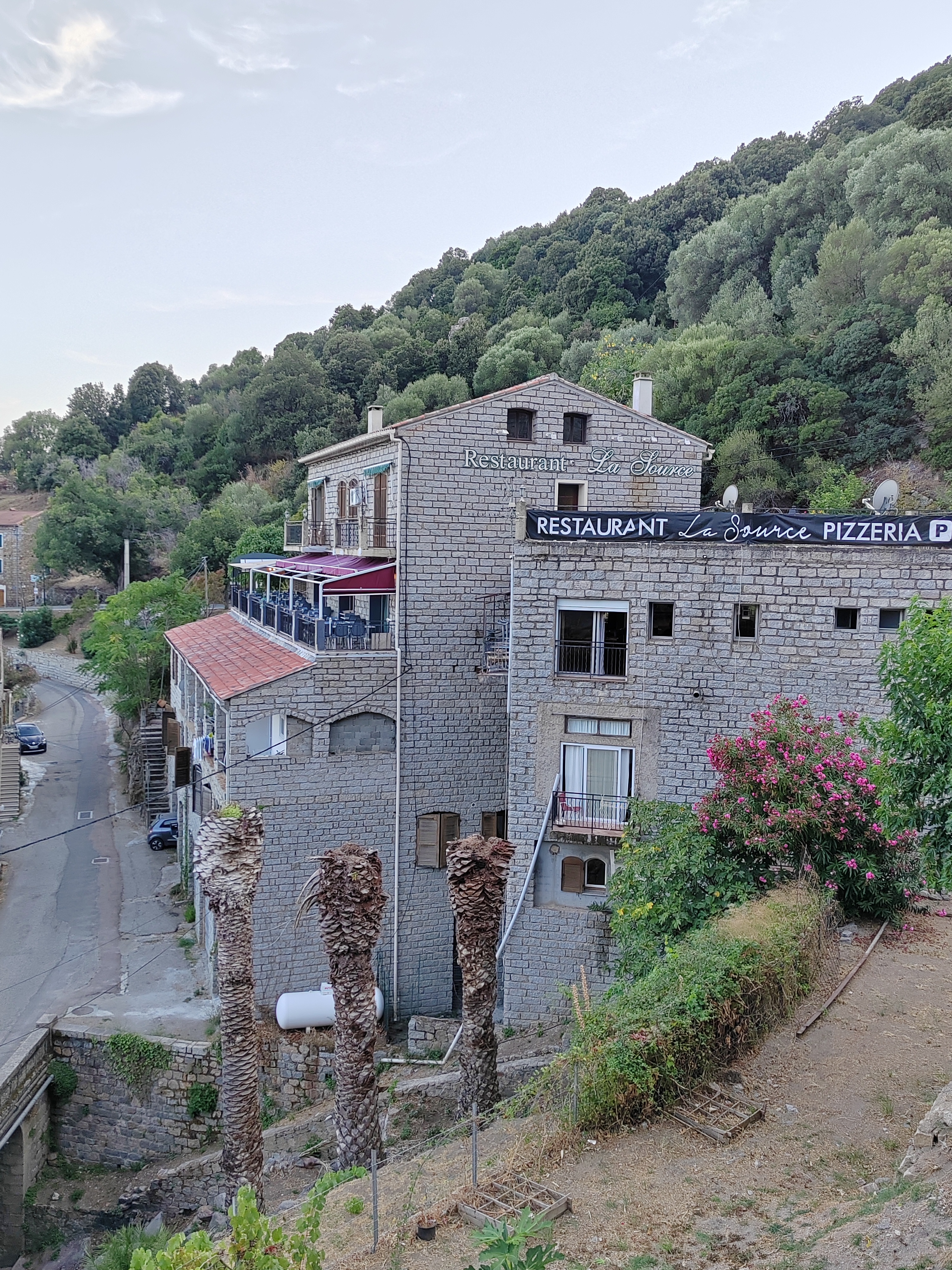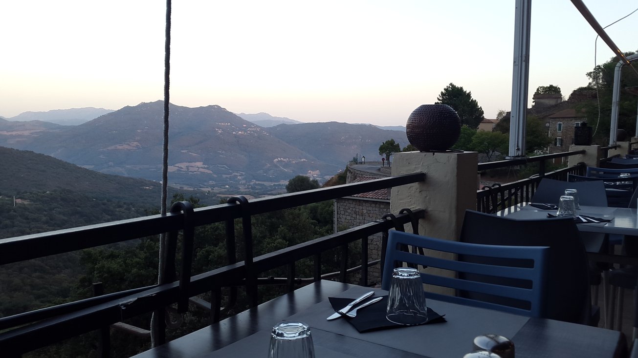 Plats corses typiques. Service de qualité. Bons vins. Une terrasse avec vue magnifique.