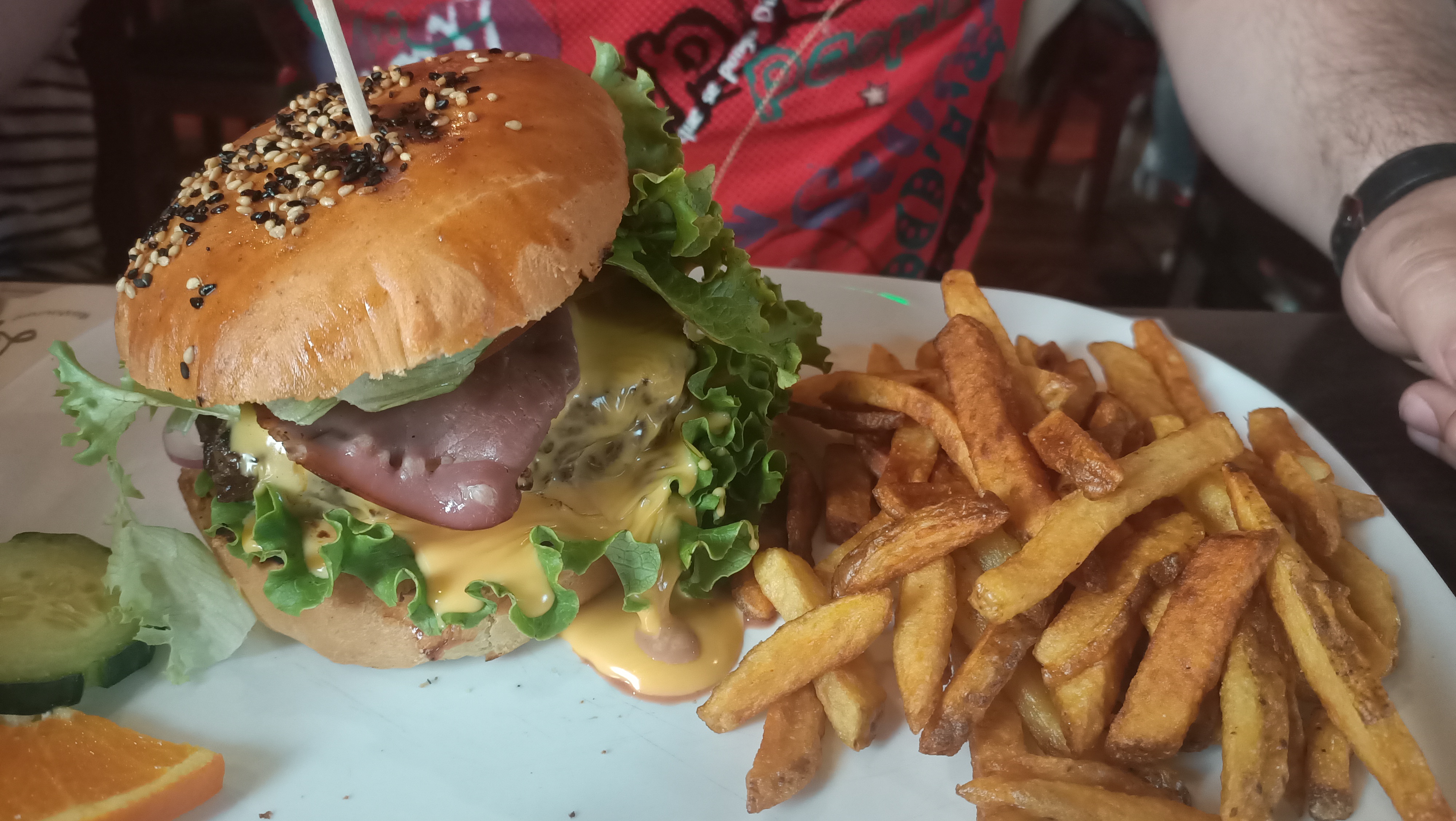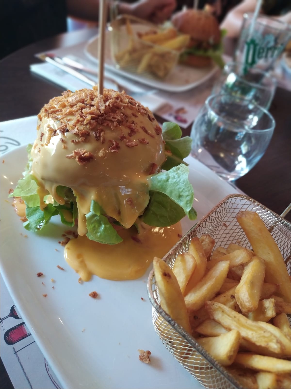 La restauration, compliquée en ce moment. Je ne m’attendais pas à de la grande cuisine mais un minimum. Burger rempli de sauces Barbecue, lard pas cuit, brochette de poulet pas cuite … Je n’ai même pas fini mon plat. Pas de dessert du coup.