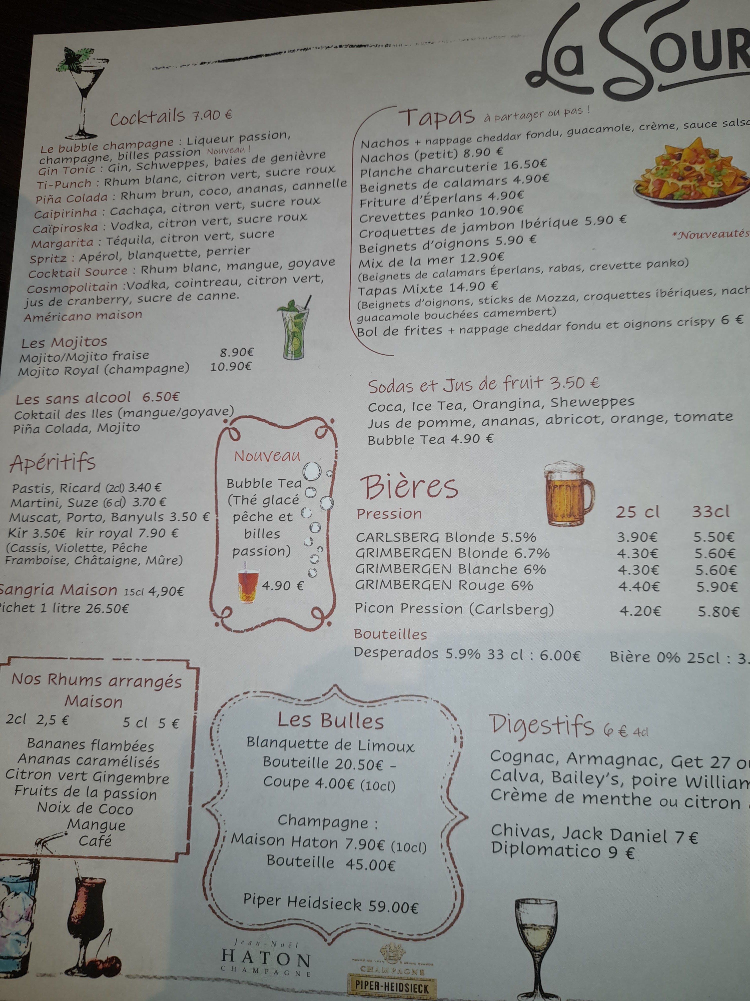 Très déçu, attente très longue, l'apertif arrive en même temps que les plats, L'accueil est froid autant pour les serveurs que le responsable . Personne n'est attentionné avec les clients . Viande très grasse , rapport qualité prix ne vos pas le coup pour ce qu'il y a à manger dans l'assiette . Personne n'est venue proposer un desert ou digestif en fin de repas . Nous sommes partit . Très decevant, la source n'est plus ce que c'était auparavant