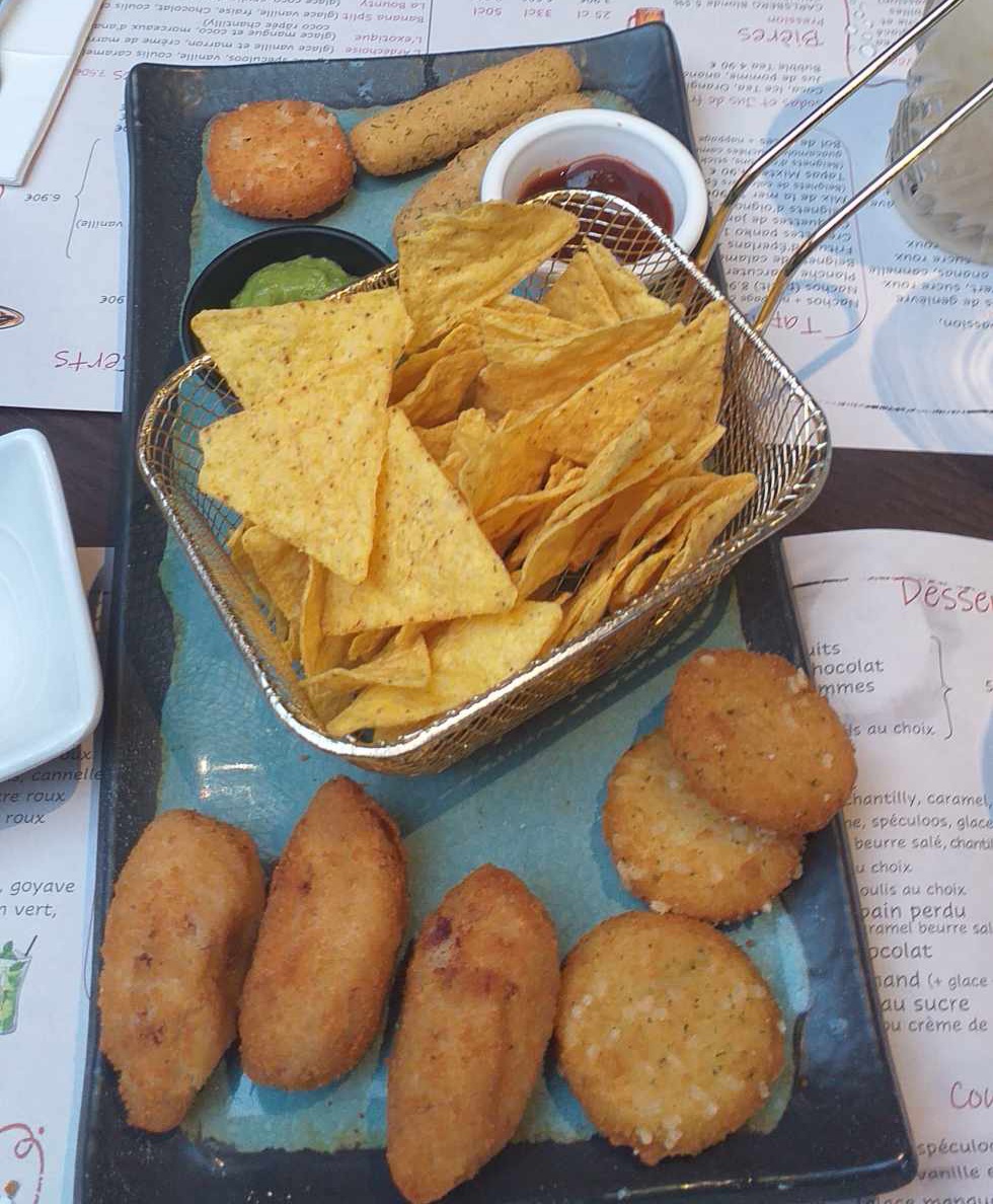 Nous avons très bien mangé : plats copieux et savoureux. Salade césar, salade cabecou, poke bowl, burger. Coupe martiniquaise bien généreuse en rhum, banofee, le meilleur de ma vie selon mon fils, Brioche perdue excellente