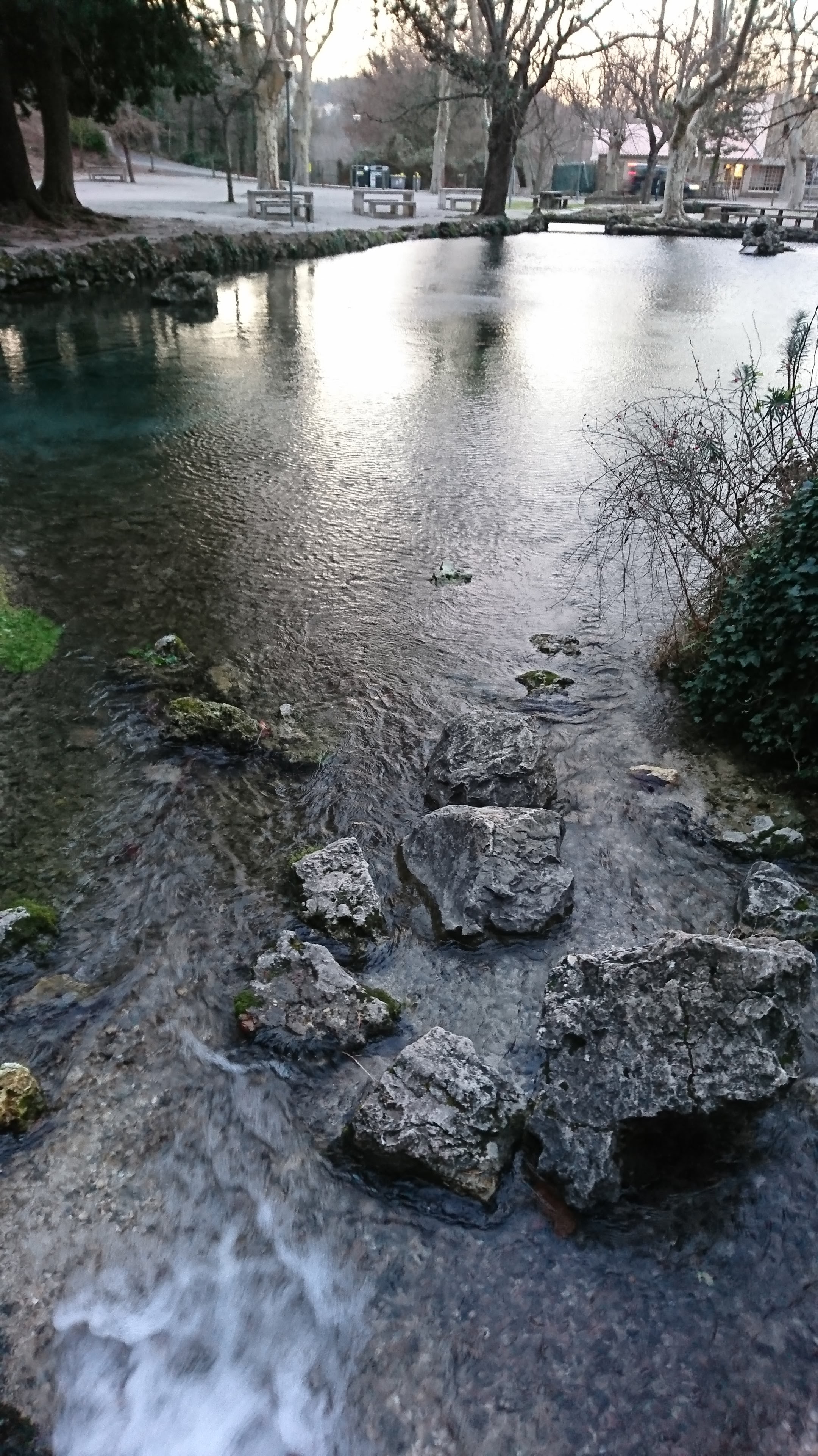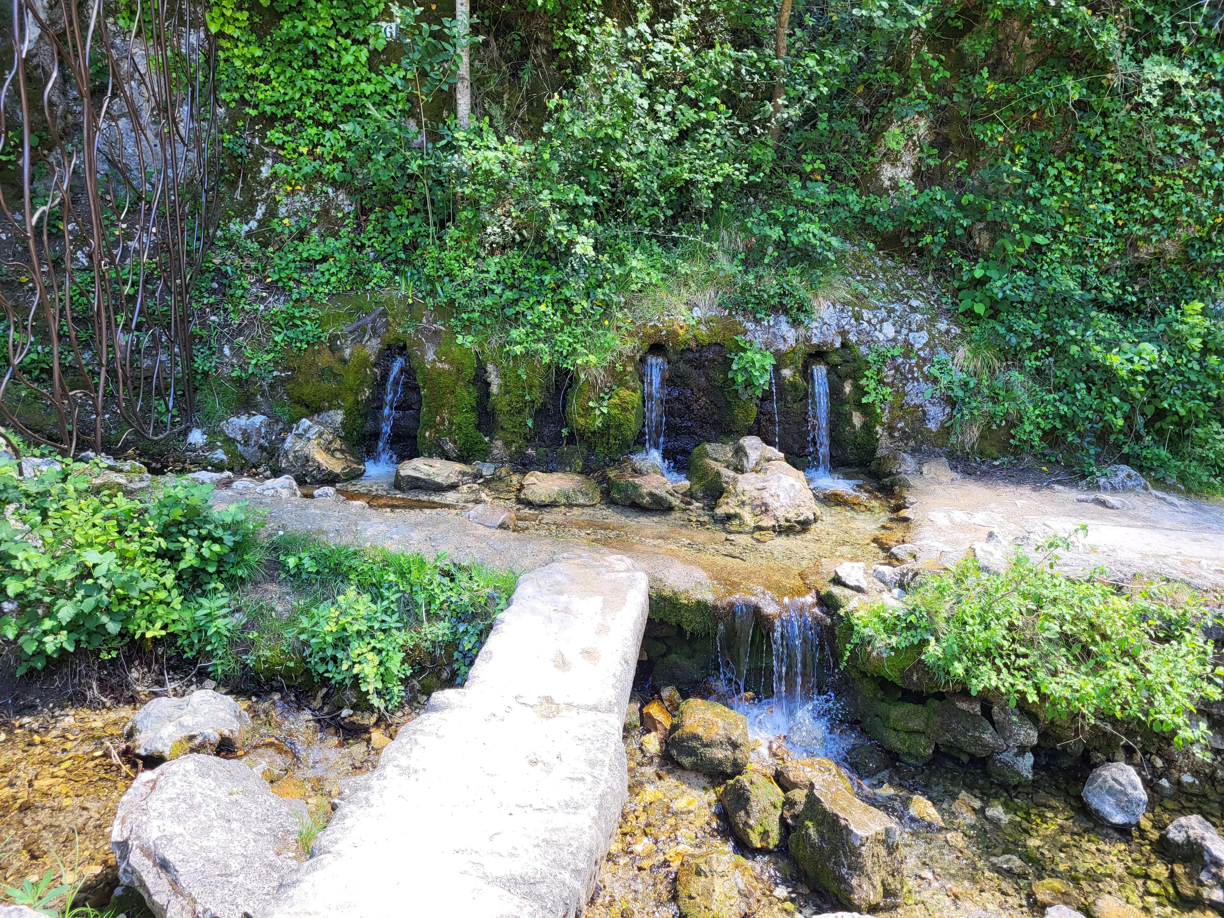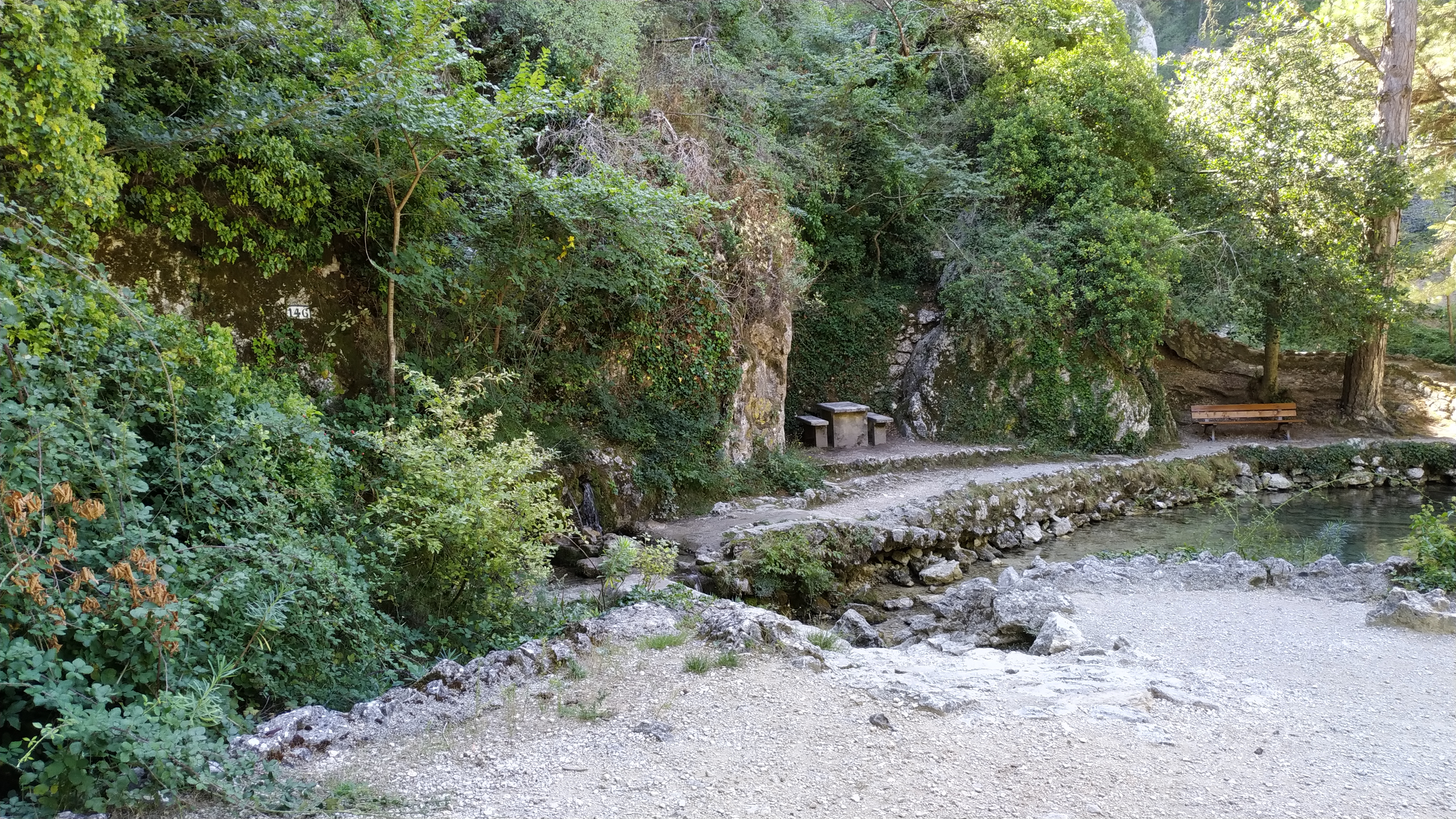Au pied du Mont Ventoux, cet espace de fraîcheur est le bienvenu, même situé en bord de route, les sources qui jaillissent de la montagne nous ont apaisée.