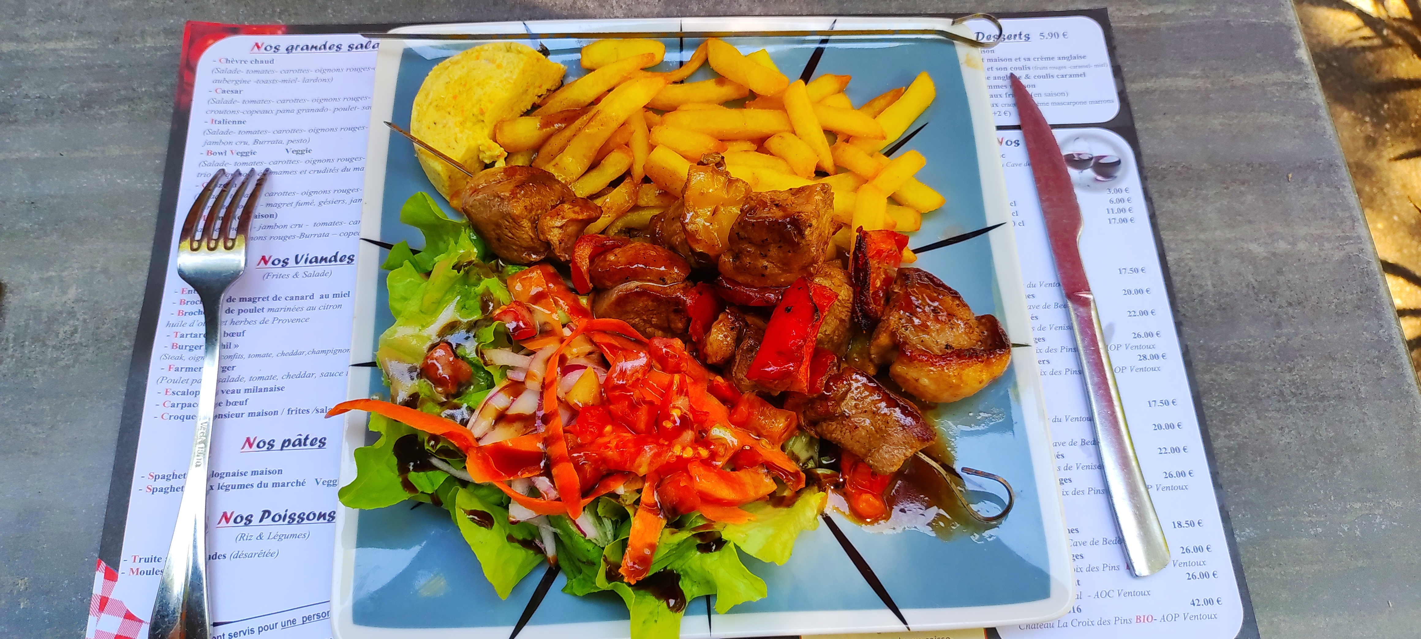 Pas de la grande cuisine. Lorsque l'on a pas trouvé mieux, ça fait le job, mais ça reste cher pour ce que c'est. Pour boire un coup c'est mieux. Grande terrasse avec de l'ombre. Si vous pouvez pousser jusqu'à Malaucène juste après, vous trouverez probablement mieux en qualité de cuisine et pas forcément plus cher.