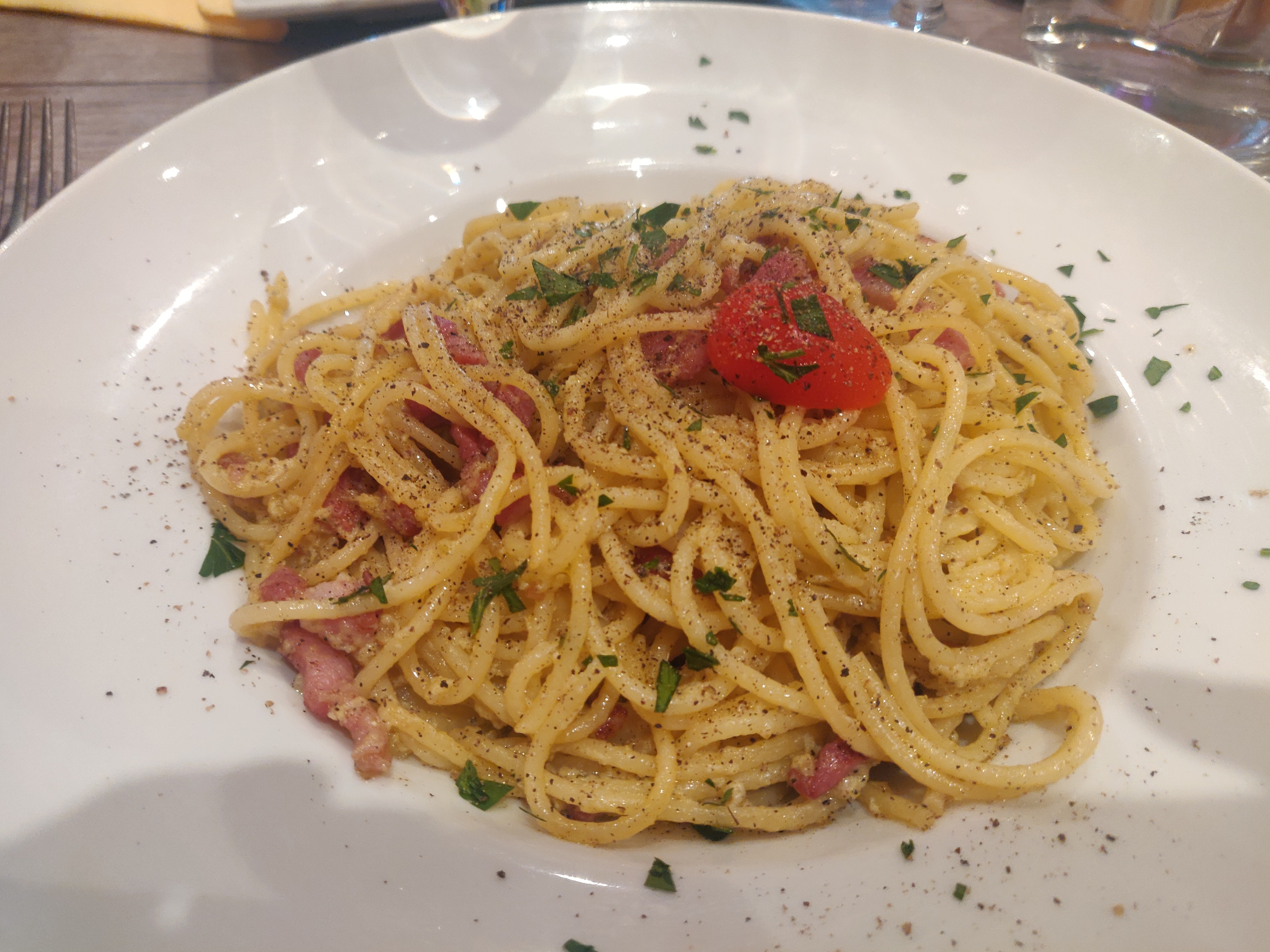 Le service est très bien. C'est dommage que la nourriture ne soit pas du même niveau. J'ai commandé des carbonara en précisant bien de vraies carbonara sans crème sans champignon... Une carbonara italienne à l'œuf, pecorino, lard, poivre... Je n'ai pas senti l'oeuf, le parmesan... Par contre il y avait un lit d'huile d'olive au fond de l'assiette.... Dommage l'intention du serveur partait d'un bon sentiment....