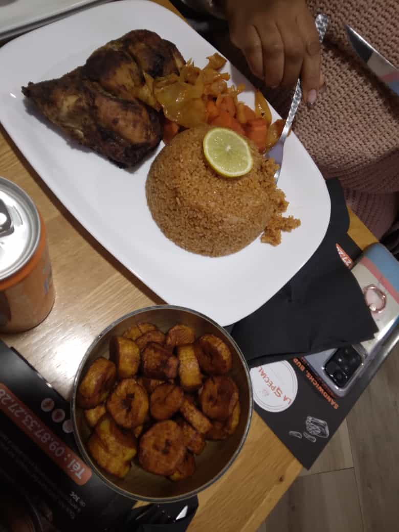 C'est la deuxième fois que je viens dans ce restaurant, et les plats sont incroyables, je prends toujours le tiep avec le poulet, mon favori mais la prochaine fois je testerai un autre plat. le bissap au gingembre, pépite, bien doux. Je recommande ce restaurant, les serveurs sont très agréables.