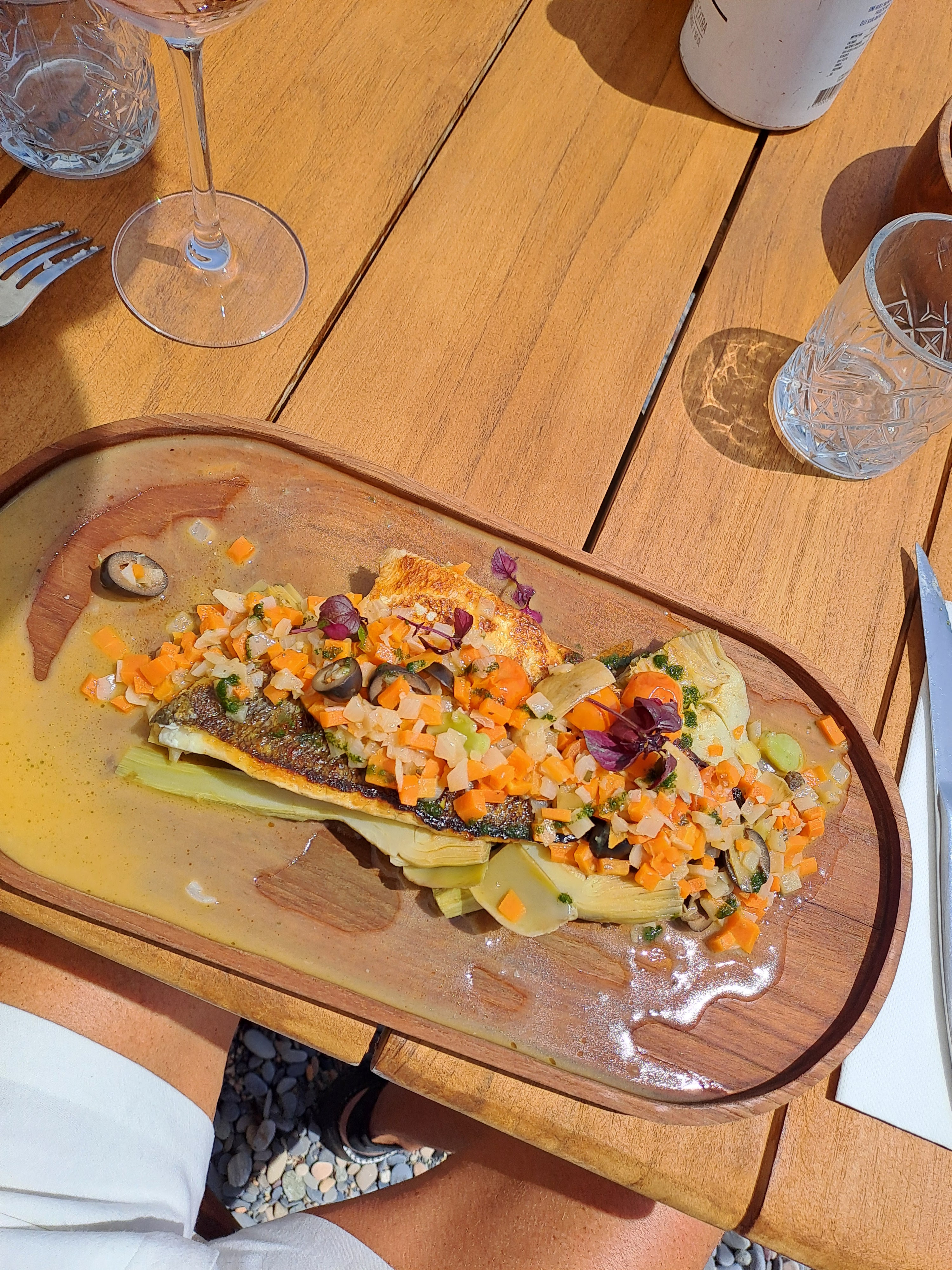 Bonne adresse, la cuisine est de qualité malgré le fait que ce soit un restaurant de plage, poisson frais et bien préparé, joli choix de vin, seules les pâtisseries n'étaient pas à la hauteur. Prix un peu élevé mais cohérent avec le cadre très agréable et le service qui était particulièrement attentif et courtois malgré le monde.