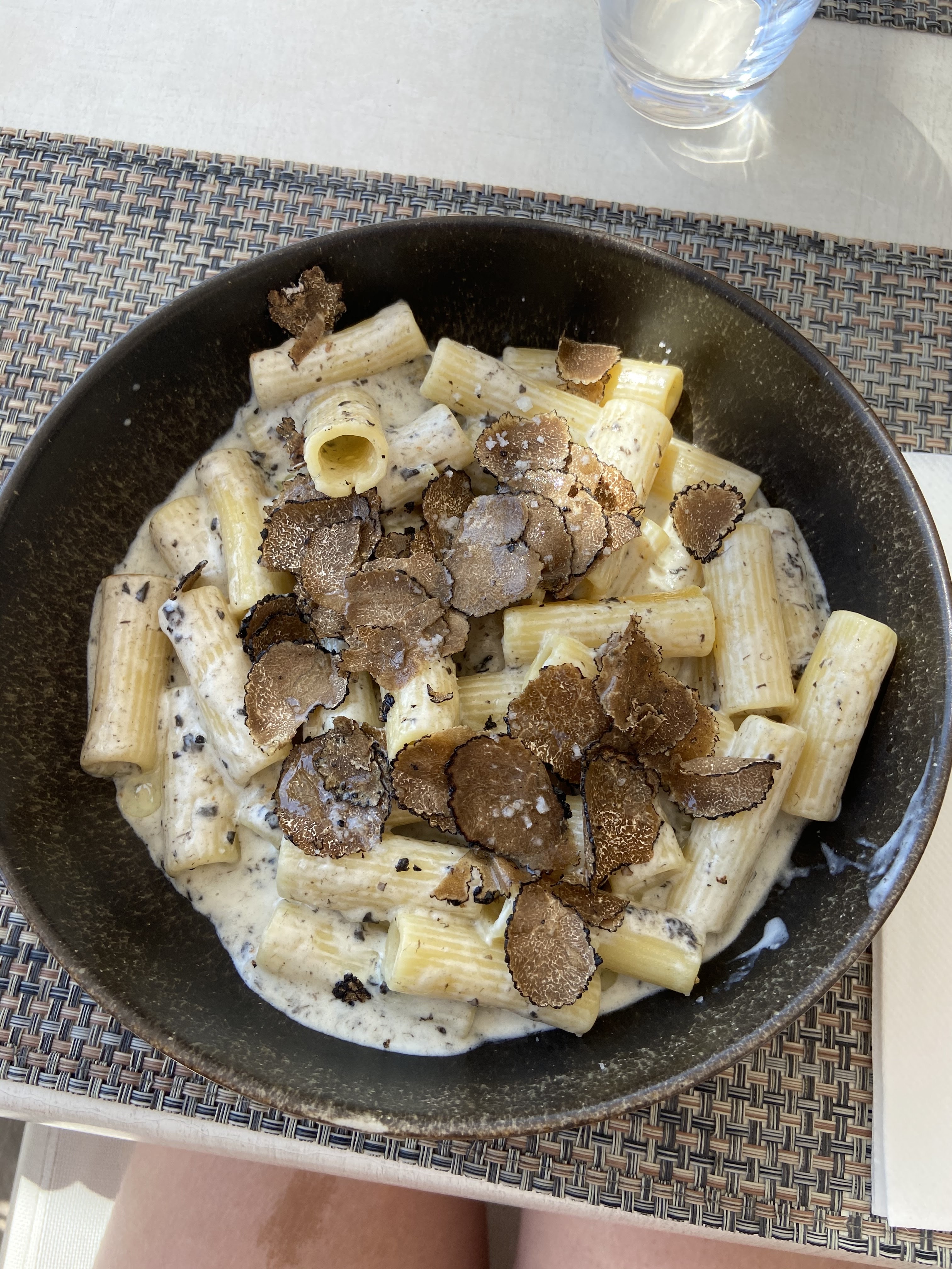 Cuisine excellente, service impeccable, vue à tomber . Beignets de fleurs de courgettes et bruschetta aux truffes à tomber.