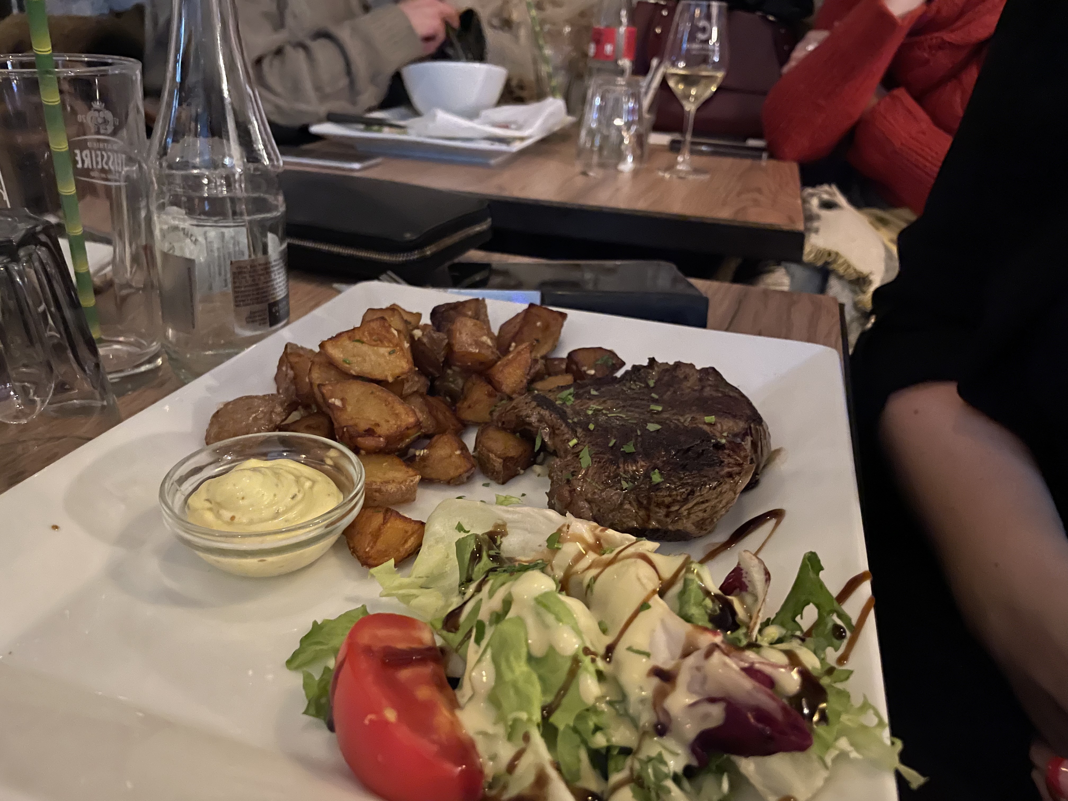 J’ai été dans ce petit resto noté 4,4, mais en suis sorti déçu. J’ai laissé le tartare prétendument « au couteau » (ne l’était pas évidemment) dans l’assiette, servi blanchâtre … et vraiment pas à mon goût.