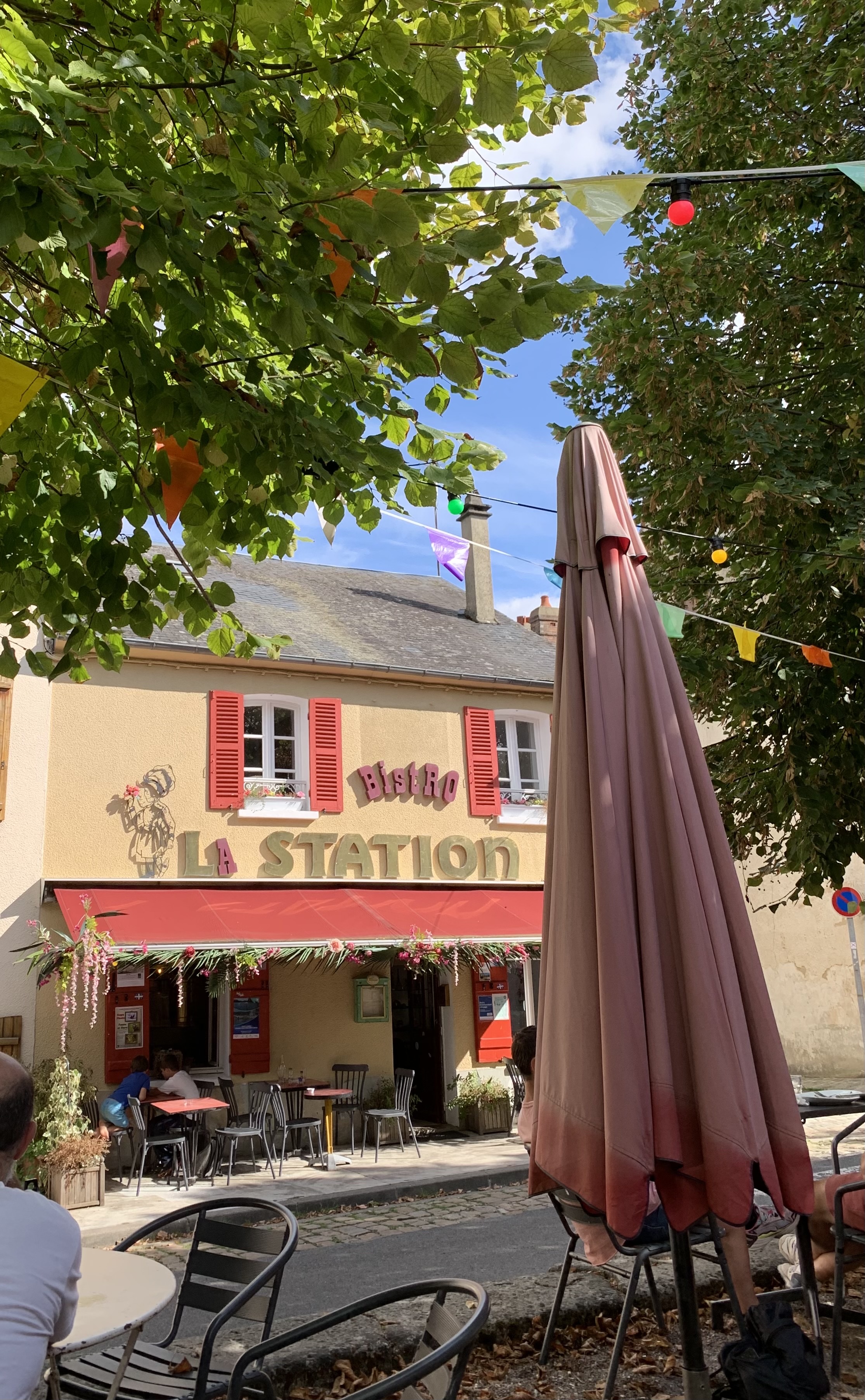 Un décor de guinguette au cœur du vieux Joigny, où l'on peut déjeuner ou boire un verre à toute heure, sur la terrasse ombragée des tilleuls. Le soleil y est doux, ainsi que la bonne ambiance, chaleureuse et entretenue par le maître des lieux, toujours souriant, toujours aimable. S'il pleut, l'intérieur de la Station renferme un cabinet de curiosités où l'on aime flâner et redécouvrir les objets de notre enfance.