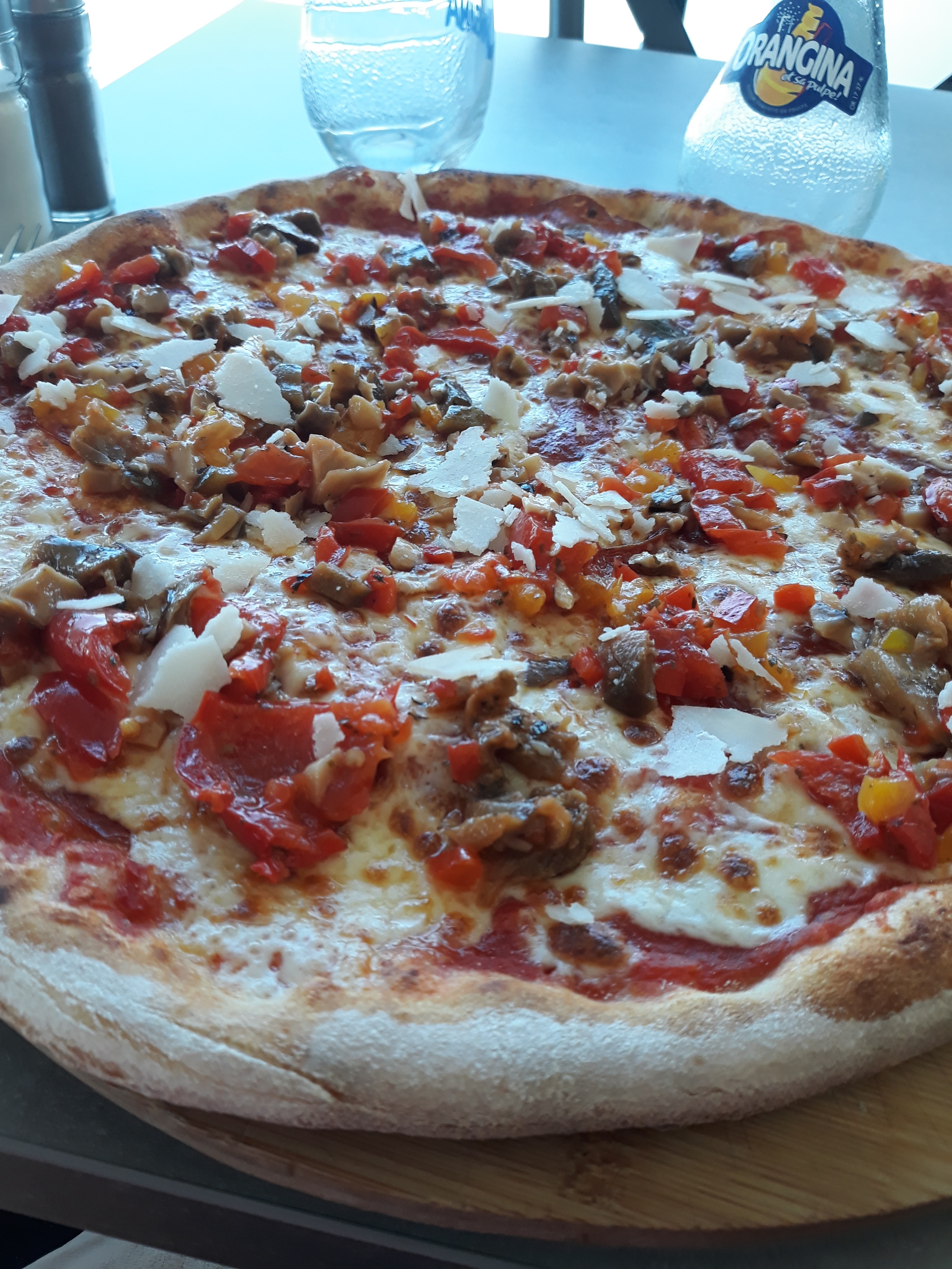 Pizza très bonne et copieuse. Eau en carafe très fraîche. Serveuse très sympathique et serviable. Un petit bémol pour le bruit des voitures, mais nous sommes dans une station.